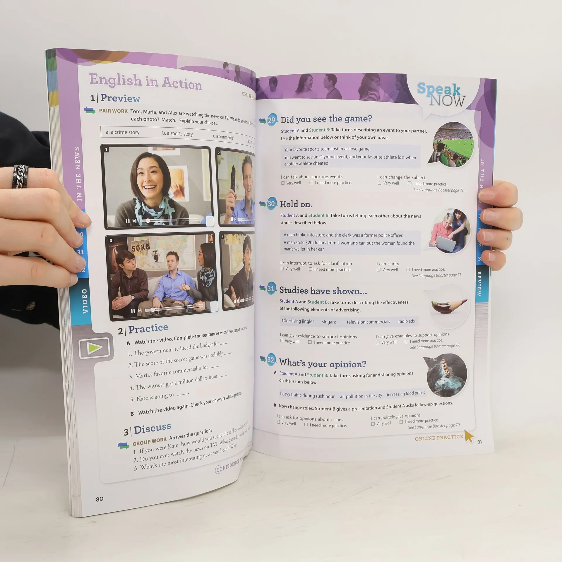 Communicate with confidence with Speak Now. With Video and Online Practice. Speak Now is a four-level speaking course which develops students' communication skills both in and out of the classroom. Every activity in Speak Now includes a speaking component. Video activities are integrated every four lessons, providing real-life language models for students. Students can also improve their listening, speaking, and pronunciation skills outside class through Online Practice. Featuring new audio, students can practice their pronunciation through a speak and record function.
