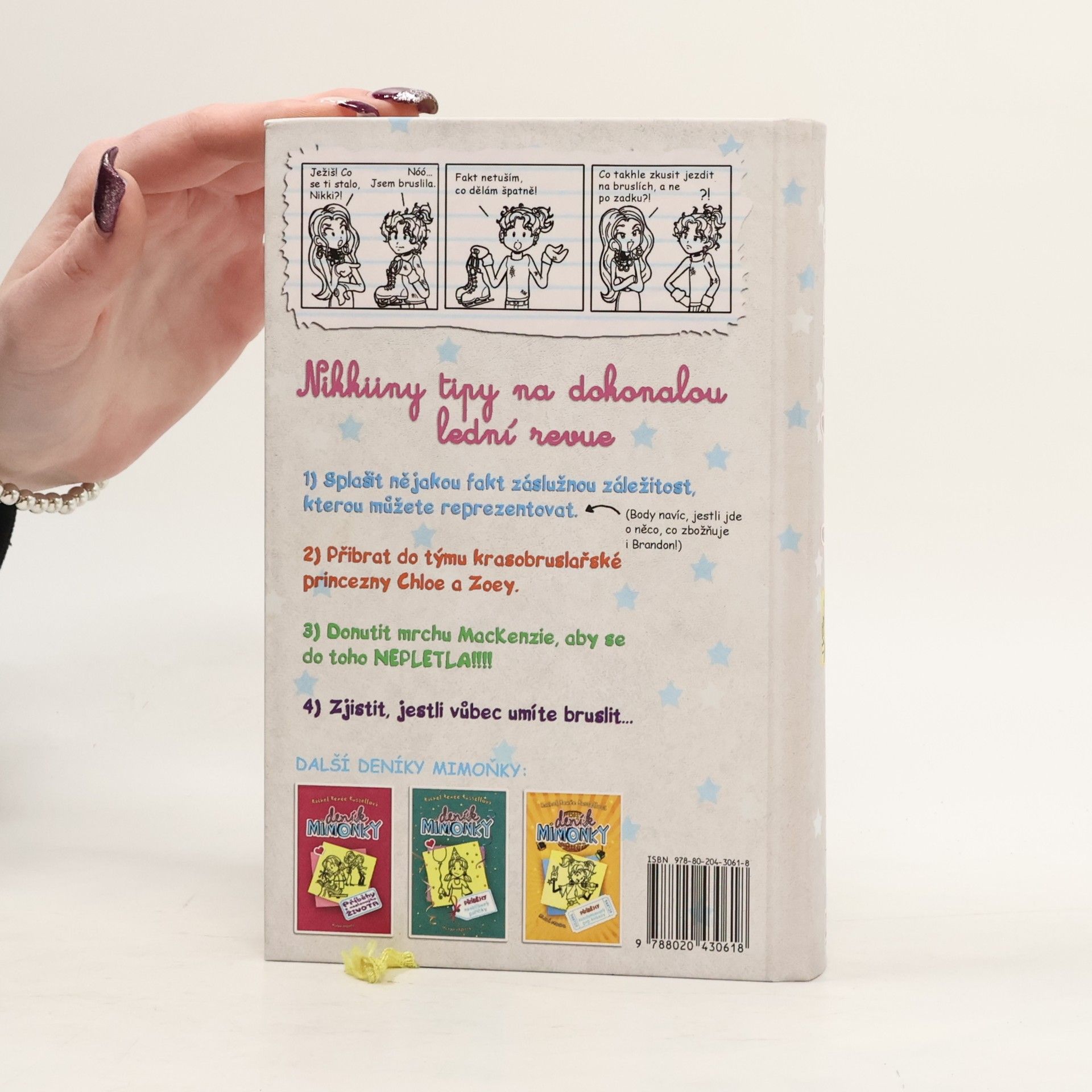 Tentokrát se Nikki se svou rivalkou střetne na charitativní lední revue! Když se Nikki dozví, že její tajná láska Brandon vypomáhá jako dobrovolník ve zvířecím útulku, vlastně ji to ani nepřekvapí. Brandon je prostě boží kluk s obrovským srdcem! Jenže útulek se teď bude muset zavřít a ve hře je MNOHEM víc než jen pár Brandonových slz. Nikki si naštěstí vždycky umí poradit a možnost zúčastnit se charitativní lední revue přijde jako na zavolanou. Zas tak jednoduché to ale samozřejmě nebude: Nikki má totiž k ladné krasobruslařské princezně pěkně daleko a všechno navíc – jako vždycky! – pořádně zkomplikuje její zapřisáhlá rivalka Mackenzie. První vydání.