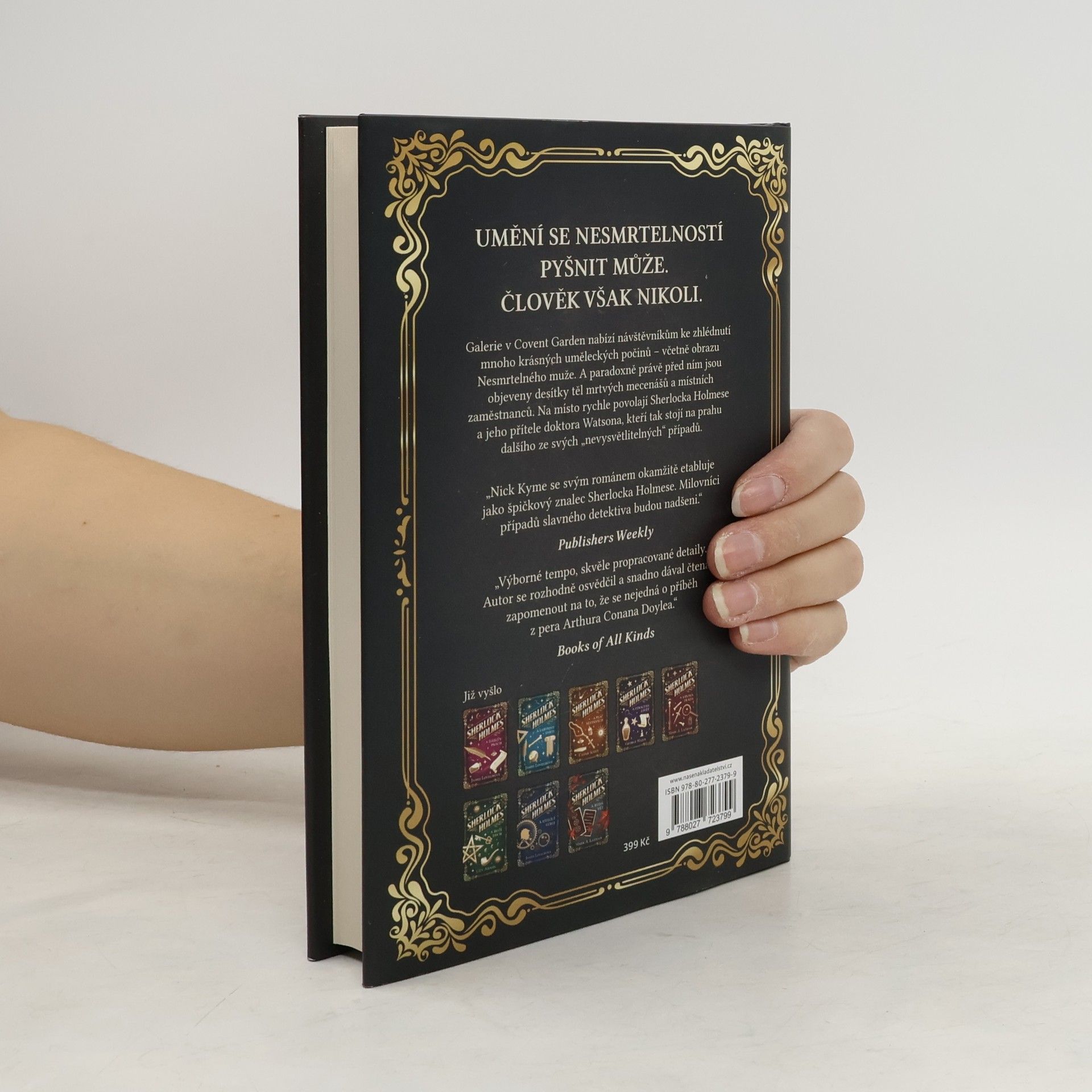 Píše se rok 1894 a Sherlock Holmes je povolán do umělecké galerie v Covent Garden, kde před obrazem Nesmrtelného muže leží tucty mrtvých návštěvníků. Jak mohl někdo zabít všechny návštěvníky výstavy do jednoho a proč by vůbec něco takového dělal? Holmes a Watson se brzy dostávají na stopu tajemné postavy v černém, kterou díky její neuvěřitelné rychlosti a hbitosti není možné dopadnout. Nedlouho poté se v nechvalně proslulém slumu najde strašlivě zohavené tělo sluhy ruského velkovévody, který právě pobývá v Londýně – má i to na svědomí stejný pachatel? Co ale tyto dva zločiny spojuje a souvisí nějak se sebevraždou nepopulární učitelky na odlehlé internátní škole? Tak začíná případ, který odhalí, jak temné stíny mohou vrhat hříchy z minulosti, a otestuje Holmese i Watsona až na hranice jejich sil…