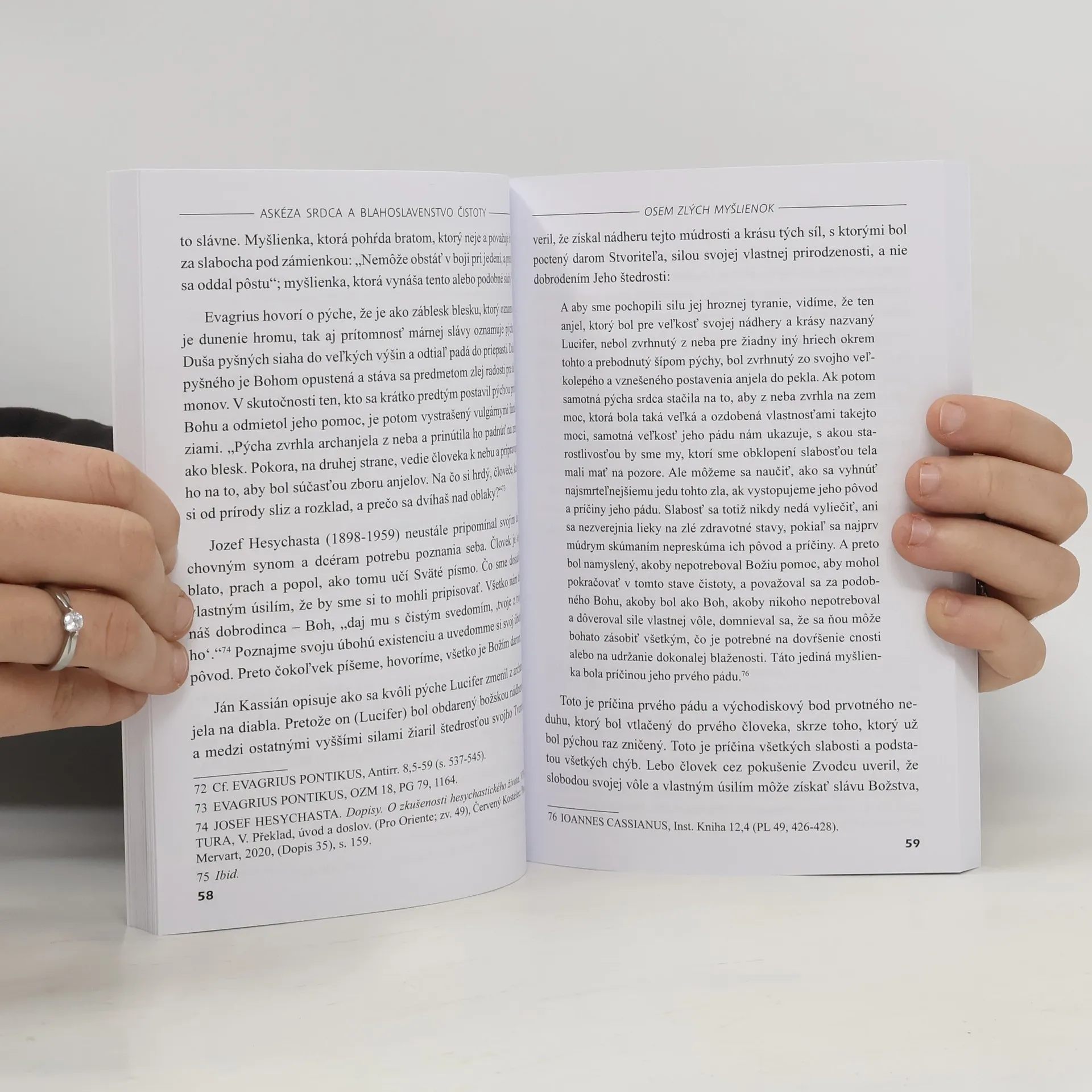 Predkladaná kniha Askéza srdca a blahoslavenstvo čistoty nás vovádza do aktívneho duchovného boja o čistotu srdca. Autor knihy na základe učenia púštnych otcov a asketických autorov oboznamuje čitateľa s ôsmimi zlými myšlienkami a liekmi, ktoré nám pomáhajú ich spoznať a zápasiť s nimi. Nechýbajú témy ako napr. rozlišovanie duchov, druhy oklamania, učenie sýrskych otcov o potrebe dosiahnuť čistotu srdca a priezračnú lásku. Askéza srdca je autorom predkladaná ako cesta k blahoslavenstvu čistoty srdca. Kniha tiež obsahuje dve prílohy, ktoré nadväzujú na obsahovú tému publikácie, a síce traktát O modlitbe od Evagria Pontského; a homíliu O svätosti a panenstve od sýrskeho mnícha a biskupa Martyria-Sahdonu. Kniha nie je určená len pre mníchov a mníšky, keďže mníšska skúsenosť predstavuje samé srdce kresťanského života, je možné predložiť ju všetkým veriacim ako vzorovú. Preto ponúka hlboký duchovný pokrm pre všetkých kresťanov, v ich každodennom úsilí o posvätenie života. Lebo askéza srdca nezahŕňa v sebe iba telesnú askézu a askézu mysle, ale aj vnemov, pocitov a naše vnútorné rozhodnutia, pretože srdce v biblickom význame vyjadruje hĺbku ľudskej bytosti.