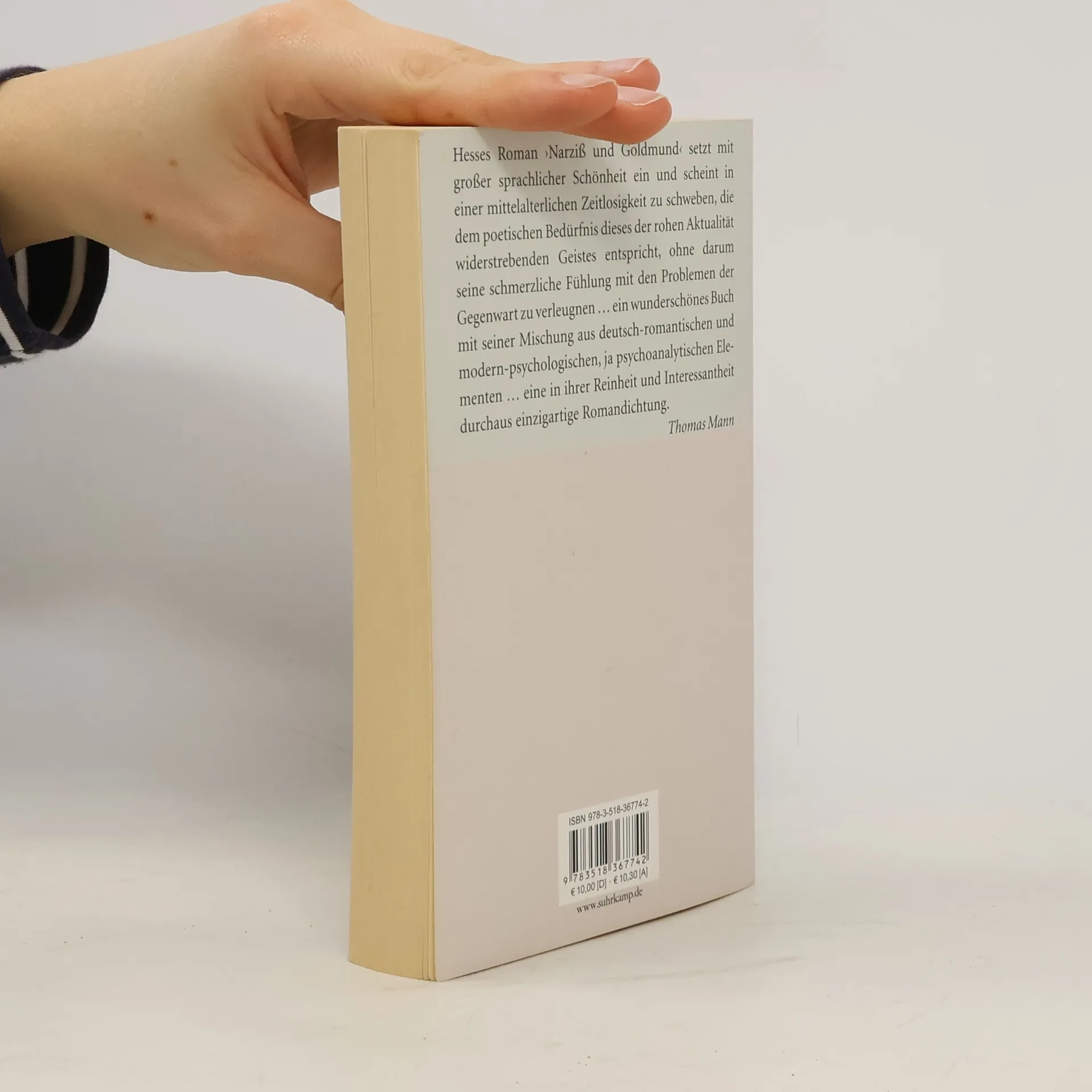 "Hesses Roman "Narziß und Goldmund" setzt mit großer sprachlicher Schönheit ein und scheint in einer mittelalterlichen Zeitlosigkeit zu schweben, die dem poetischen Bedürfnis dieses der rohen Aktualität widerstrebenden Geistes entspricht, ohne darum seine schmerzliche Fühlung mit den Problemen der Gegenwart zu verleugnen...ein wunderschönes Buch mit seiner Mischung aus deutsch-romantischen und modern-psychologischen, ja psychoanalytischen Elementen...eine in ihrer Reinheit und Interessantheit durchaus einzigartige Romandichtung." Thomas Mann