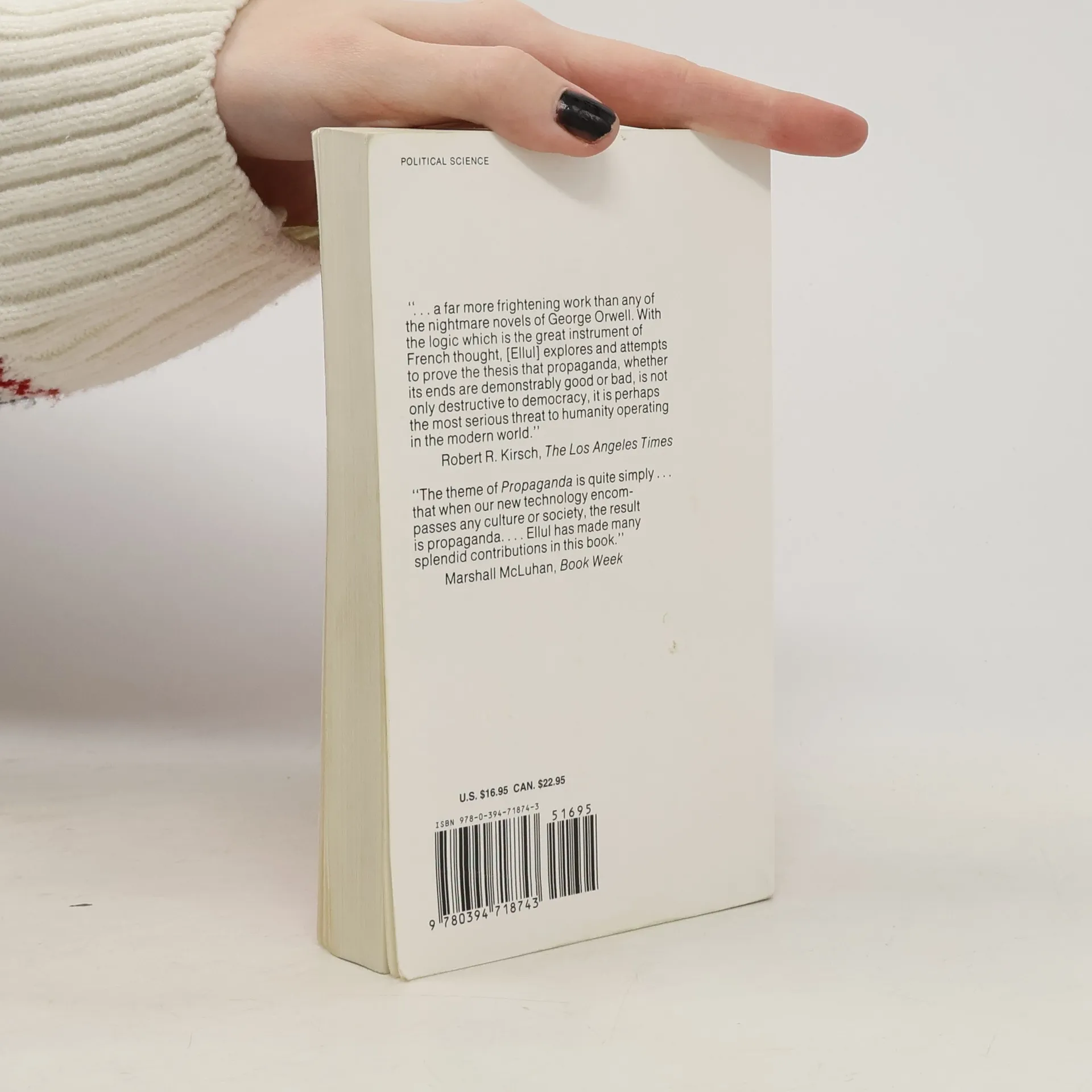 "A far more frightening work than any of the nightmare novels of George Orwell. With the logic which is the great instrument of French thought, [Ellul] explores and attempts to prove the thesis that propaganda, whether its ends are demonstrably good or bad, is not only destructive to democracy, it is perhaps the most serious threat to humanity operating in the modern world."--Los Angeles Times"The theme of Propaganda is quite simply...that when our new technology encompasses any culture or society, the result is propaganda... Ellul has made many splendid contributions in this book."--Book Week"An exhaustive catalog of horrors. It shows how modern, committed man, surrounded and seized by propaganda, more often than not surrenders himself to it only too willingly, especially in democracies--because he is educated for his rule as dupe. 'The most favorable moment to seize a man and influence him,' Ellul writes, 'is when he is alone in the mass; it is at this point that propaganda can be most effective. This is the situation of the 'lonely crowd,' or of isolation in the mass, which is a natural product of modern-day society, which is both used and deepened by the mass media.' "--Los Angeles Free Press