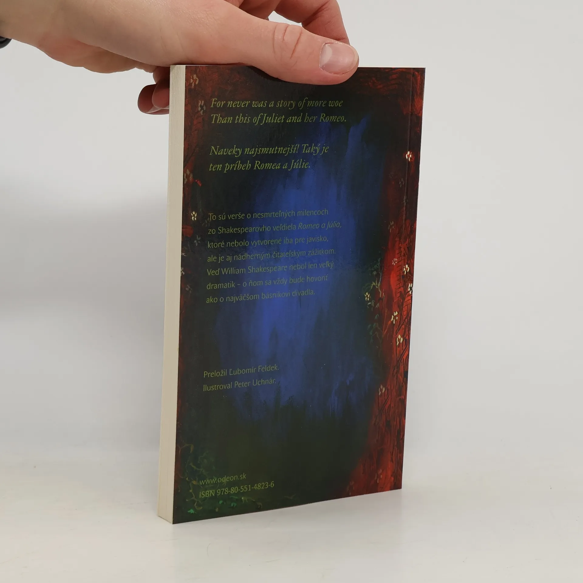 Naveky najsmutnejší! Taký je ten príbeh Romea a Júlie. To sú verše o nesmrteľných milencoch zo Shakespearovho veľdiela Romeo a Júlia, ktoré nebolo vytvorené iba pre javisko, ale je aj nádherným čitateľským zážitkom. William Shakespeare (1564 – 1616) nebol obyčajný dramatik – o ňom sa vždy bude hovoriť ako o najväčšom básnikovi divadla. Aj nový slovenský preklad je dielom básnika – hru preložil Ľubomír Feldek. V jeho preklade pripravuje vydavateľstvo Ikar ďalšie Shakespearove hry: Trojkráľový večer, Sen svätojánskej noci, Othello, Ako sa vám páči, Antonius a Kleopatra.