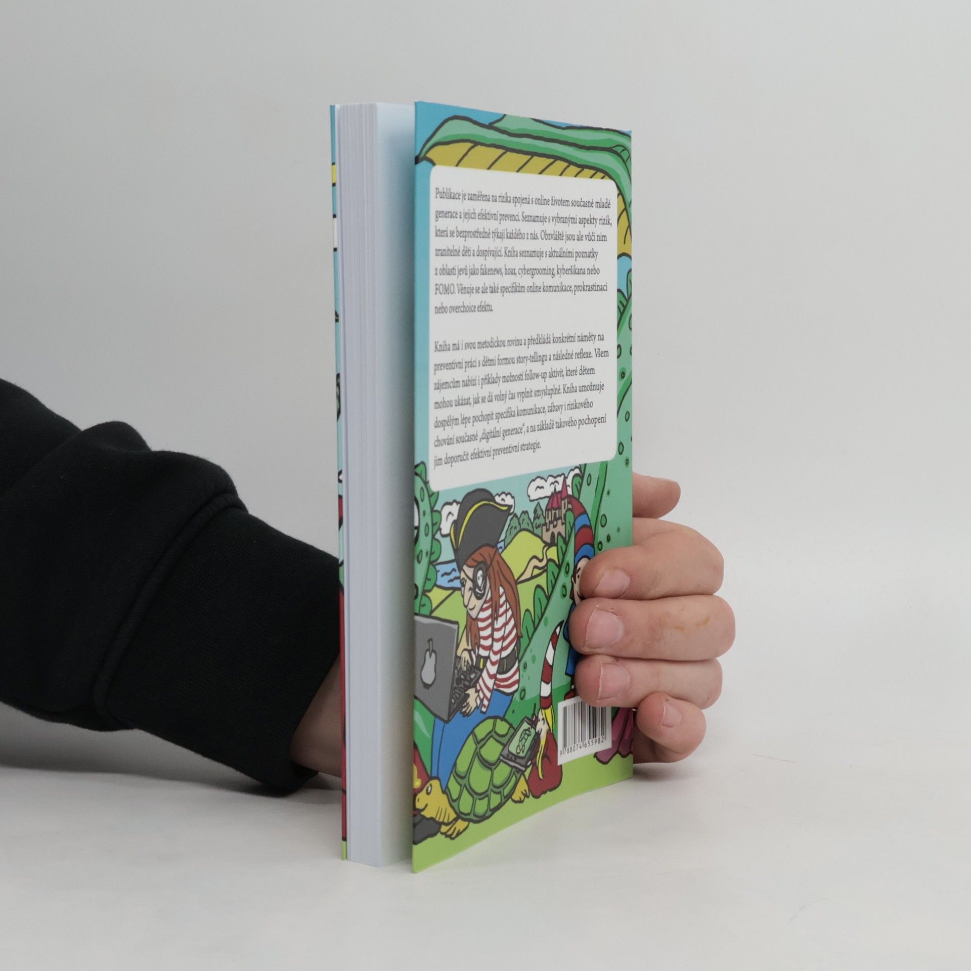 Průvodce online světem v edukačních a preventivních souvislostech Publikace je zaměřena na rizika spojená s online životem současné mladé generace a na jejich efektivní prevenci. Seznamuje s vybranými aspekty rizik, která se bezprostředně týkají každého z nás. Obzvláště jsou ale vůčinim zranitelné děti a dospívající. Přináší aktuální poznatky z oblasti jevů jako fake news, hoax, cybergrooming, kyberšikana nebo FoMo. Věnuje se ale také specifikům online komunikace, prokrastinaci nebo overchoice efektu. Publikace má i svou metodickou rovinu a předkládá konkrétní náměty na preventivní práci s dětmi formou story-tellingu a následné reflexe. Všem zájemcům nabízí i příklady možností follow-up aktivit, které dětem mohou ukázat, jak se dá volný čas vyplnit smysluplně. Umožňuje dospělým lépe pochopit specifika komunikace, zábavy i rizikového chování současné "digitální generace", a na základě takového pochopení dětem doporučit efektivní preventivní strategie.