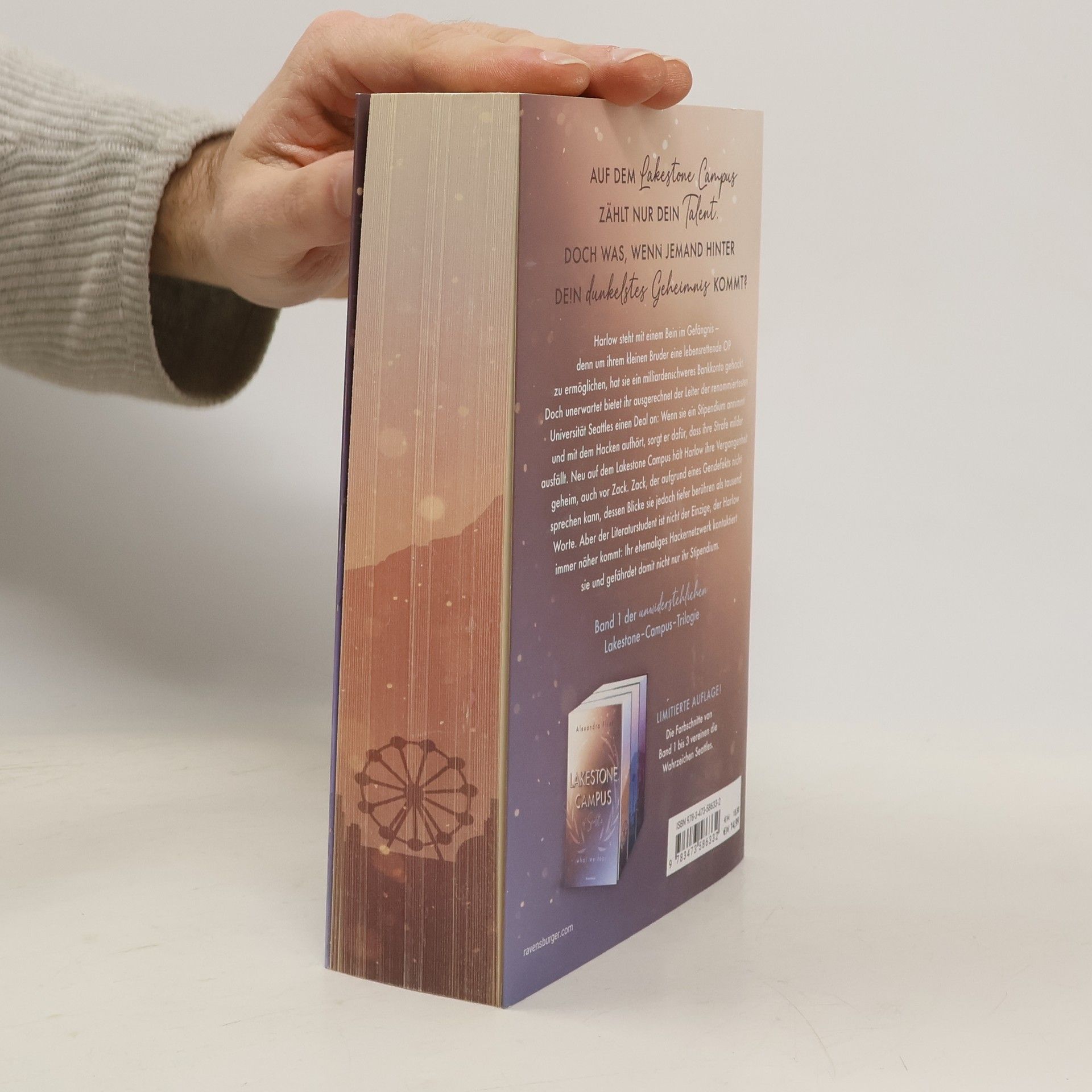 ***Limitierte Auflage mit farbigem Buchschnitt und Charakterkarte! Nur solange der Vorrat reicht!*** Harlow steht mit einem Bein im Gefängnis – denn um ihrem kleinen Bruder eine lebensrettende OP zu ermöglichen, hat sie ein milliardenschweres Bankkonto gehackt. Doch unerwartet bietet ihr der Leiter des Lakestone Campus in Seattle ein Stipendium und Sozialstunden an. Neu an der Uni hält Harlow ihre Vergangenheit geheim. Auch vor dem Literaturstudenten Zack, der aufgrund eines Gendefekts nicht sprechen kann. Aber nicht nur er kommt Harlow immer näher, sondern auch ihr ehemaliges Hackernetzwerk. Mitreißend. Knisternd. Unwiderstehlich. Band 1 der neuen New-Adult-Trilogie von SPIEGEL-Bestsellerautorin Alexandra Flint. Die Bücher der Lakestone-Campus-Reihe: Band 1: What We Fear Band 2: What We Lost (erscheint im Herbst 2024) Band 3: What We Hide (erscheint im Frühjahr 2025) Weitere knisternde New-Adult-Romance der Autorin bei Ravensburger: Maple-Creek-Dilogie Band 1: Meet Me in Maple Creek Band 2: Save Me in Maple Creek