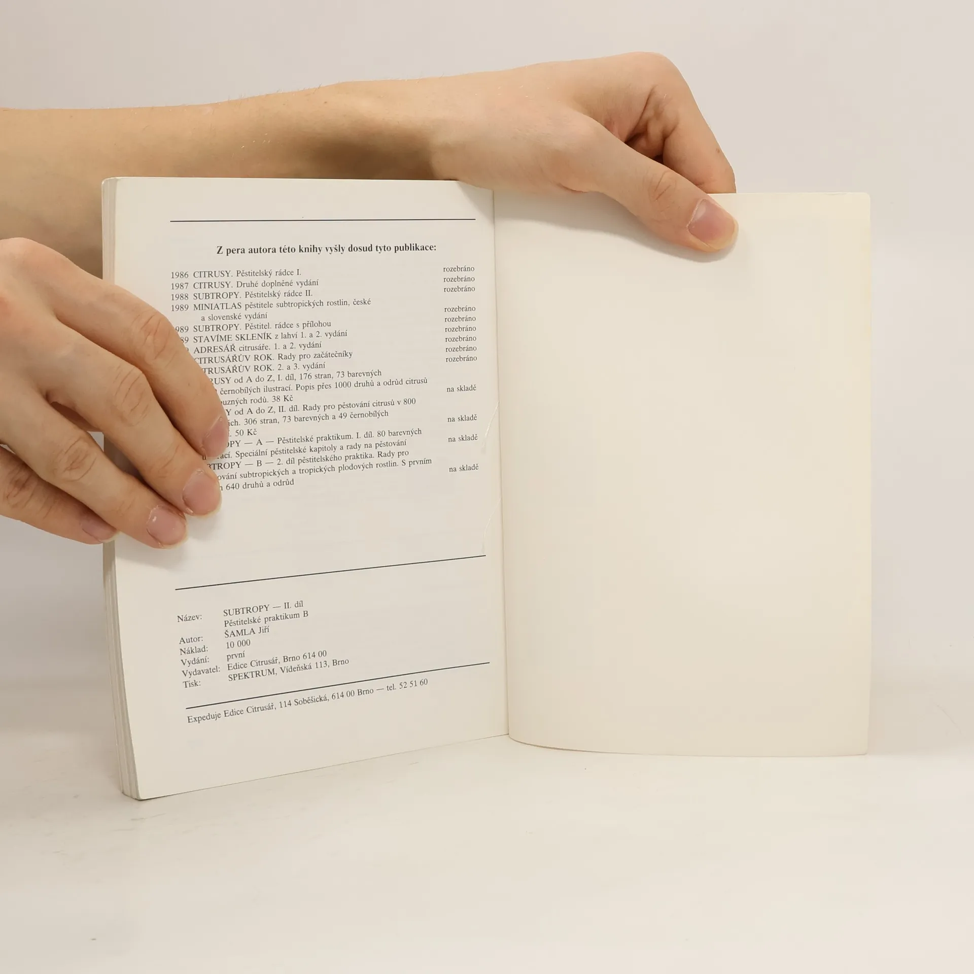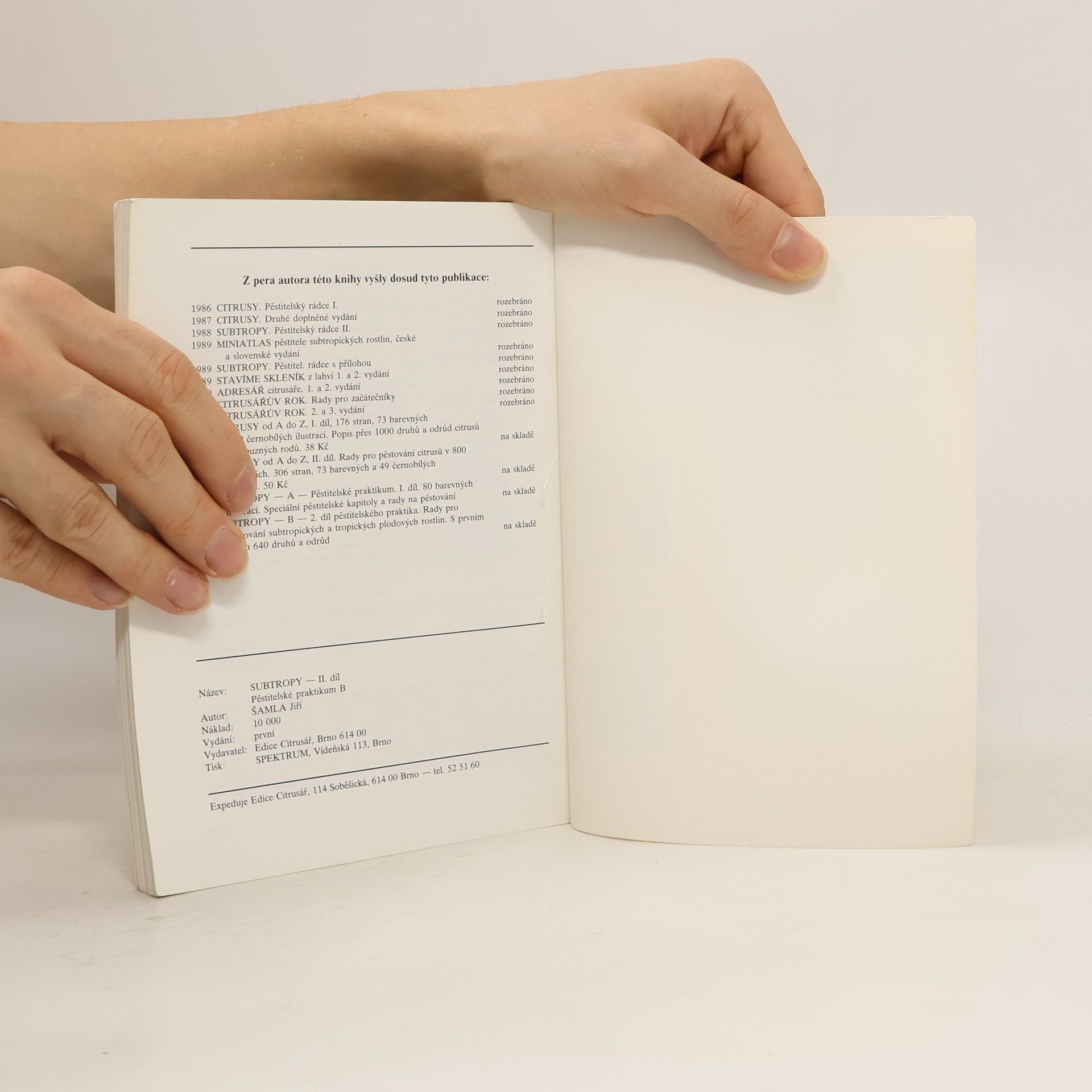 Pěstování subtropických plodin, zejména ovoce. Kniha má uspořádání, které by mělo pěstitelům nejlépe vyhovovat, mělo by být srozumitelné a přehledné. Při výběru rostlin se autor řídil pouze zájmy pěstitelů, které jsou široké, neohraničitelné a nekonečné ve své spirále.V knize je zařazeno na 640 druhů a odrůd tropických a subtropických plodových rostlin.