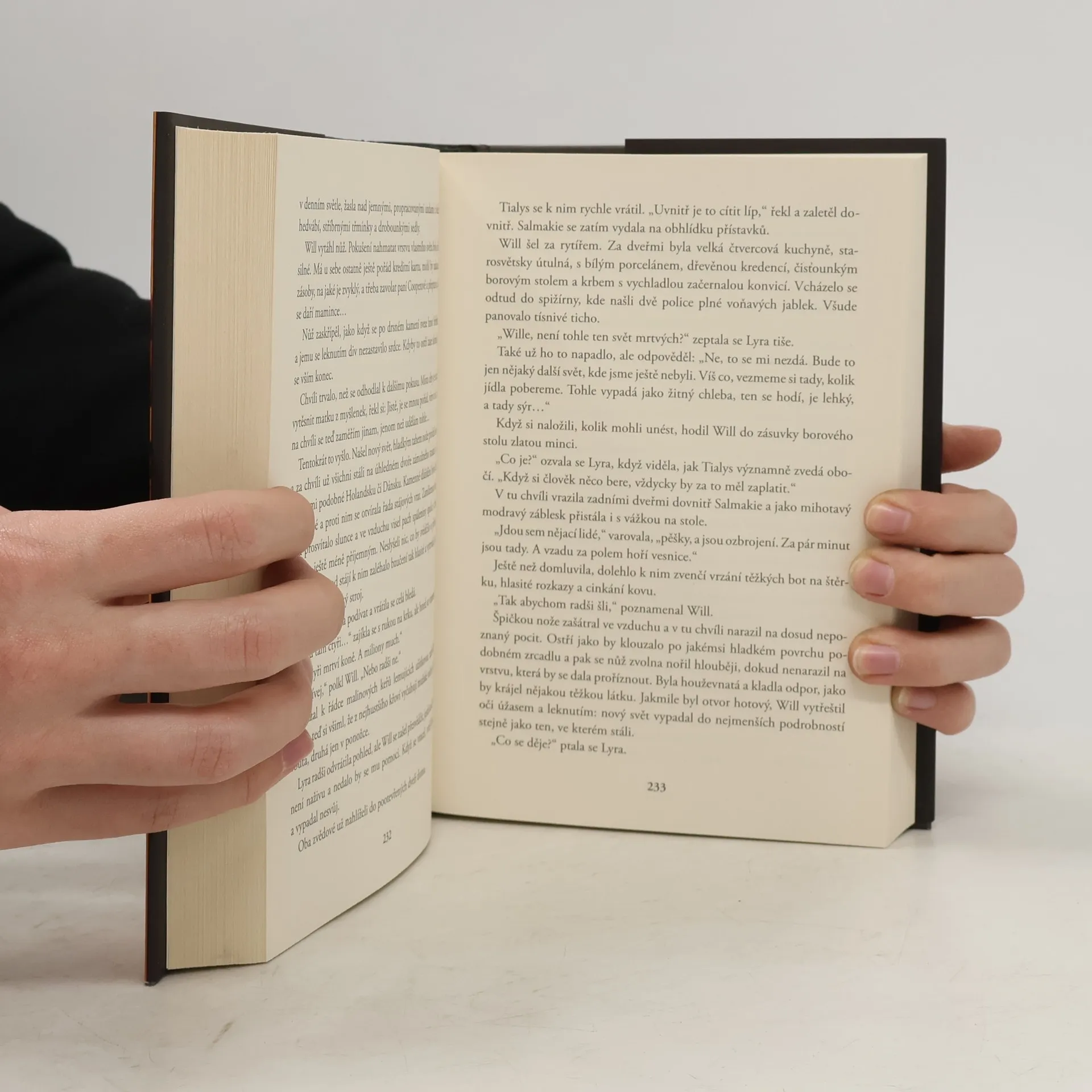 Ve třetím dílu fantasy trilogie musí Will nejprve najít Lyru, kterou její matka, krásná paní Coulterová, drží omámenou v odlehlé jeskyni. Jejich společná cesta je pak vede do říše mrtvých, kde se oba setkávají se svými blízkými. Bitva na nebesích vrcholí a Lyra bezděky naplňuje úlohu, k níž byla předurčena. Pak ale ji i Willa čeká nejtěžší rozhodnutí ze všech.