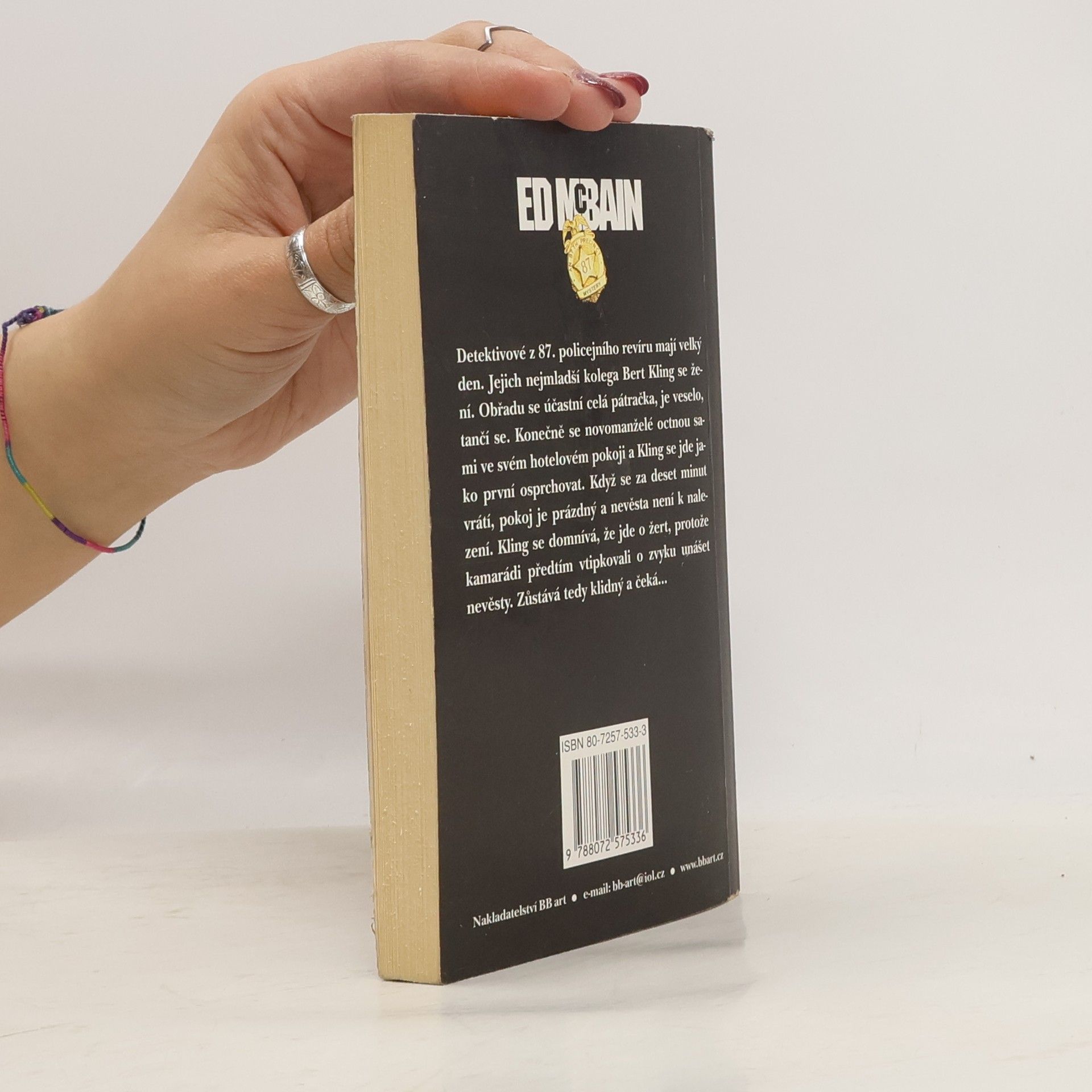 Detektivové z 87. policejního revíru mají velký den. Jejich nejmladší kolega Bert Kling se žení. Po dvou láskách, které dopadly špatně – první byla zavražděna a druhá si našla jiného – si bere krásnou modelku Augustu. Obřadu se účastní celá pátračka i s manželkami a poručíkem Byrnesem, je veselo, tančí se. Augustin starý ctitel a přítel Alexandr Pike při obřadu i oslavě neúnavně mačká spoušť svého fotoaparátu. Konečně se novomanželé octnou sami ve svém hotelovém pokoji a Kling se jde jako první osprchovat. Když se za deset minut vrátí, pokoj je prázdný a nevěsta není k nalezení. Kling se domnívá, že jde o žert, protože kamarádi předtím vtipkovali o zvyku unášet nevěsty. Zůstává tedy klidný a čeká. Po chvíli však v pokoji objeví kousek vyta nasáklý chloroformem a jeden Augustin střevíček. Je jasné, že nejde o žádný žert. Rozběhne se horečné pátrání. Pomáhají v něm Pikeovy snímky a osvědčí se i staří známí donašeči a kolega ze sousedního revíru Špekoun Ollie Weeks…