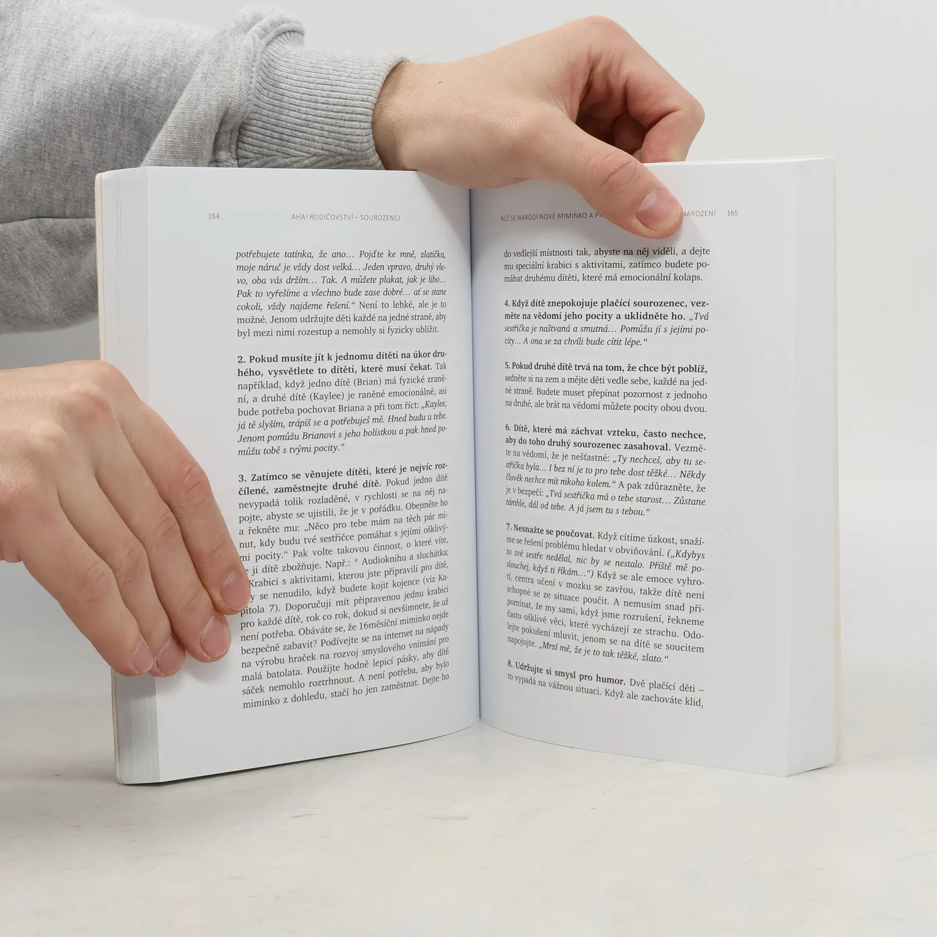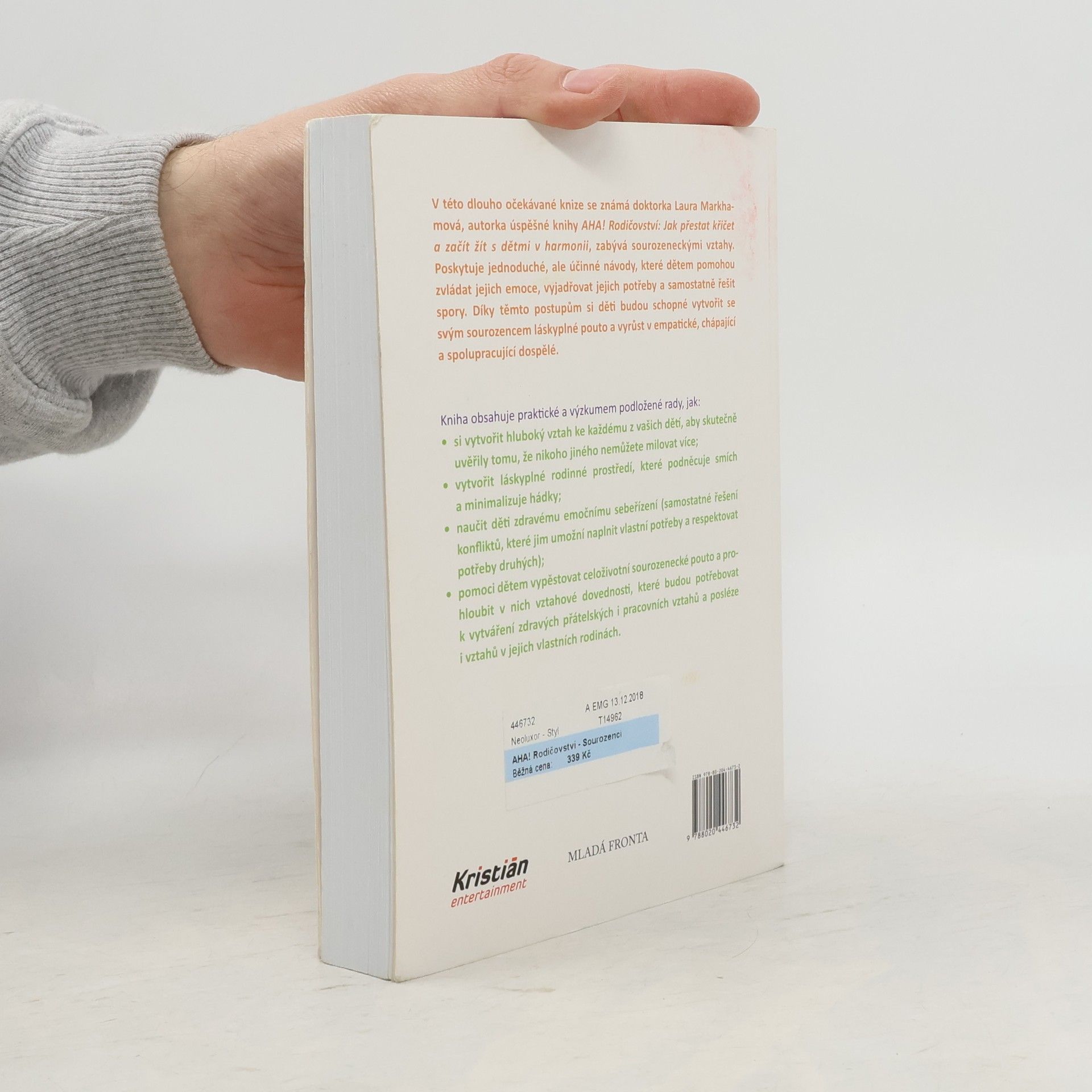 Jak zabránit sporům mezi sourozenci a vychovat z nich přátele na celý život. V této dlouho očekávané knize se známá doktorka Laura Markhamová, autorka úspěšné knihy AHA! Rodičovství: Jak přestat křičet a začít s dětmi žít v harmonii, zabývá sourozeneckými vztahy. Poskytuje jednoduché, ale účinné návody, které dětem pomohou zvládat jejich emoce, vyjadřovat jejich potřeby a samostatně řešit spory. Díky těmto postupům si děti budou schopné vytvořit se svým sourozencem láskyplné pouto a vyrůst v empatické, chápající a spolupracující dospělé. Kniha obsahuje praktické a výzkumem podložené rady, jak: - si vytvořit hluboký vztah ke každému z vašich dětí, aby skutečně uvěřily tomu, že nikoho jiného nemůžete milovat více; - vytvořit láskyplné rodinné prostředí, které podněcuje smích a minimalizuje hádky; - naučit děti zdravému emočnímu sebeřízení (samostatné řešení konfliktů, které jim umožní naplnit vlastní potřeby a respektovat potřeby druhých); - pomoci dětem vypěstovat celoživotní sourozenecké pouto a prohloubit v nich vztahové dovednosti, které budou potřebovat k vytváření zdravých přátelských i pracovních vztahů a posléze i vztahů v jejich vlastních rodinách.