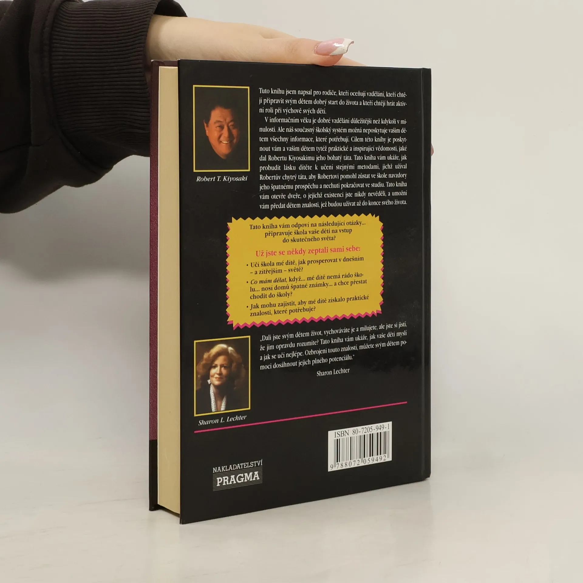 Tuto knihu jsem napsal pro rodiče, kteří oceňují vzdělání, kteří chtějí připravit svým dětem dobrý start do života a kteří chtějí hrát aktivní roli při výchově svých dětí. V informačním věku je dobré vzdělání důležitější než kdykoli v minulosti. Ale náš současný školský systém možná neposkytuje vašim dětem všechny informace, které potřebují. Cílem této knihy je poskytnout vám a vašim dětem tytéž praktické a inspirující vědomosti, jaké dal Robertu Kiyosakimu jeho bohatý táta. Tato kniha vám ukáže, jak probudit lásku dítěte k učení stejnými metodami, jichž užíval Robertův chytrý táta, aby Robertovi pomohl zůstat ve škole navzdory jeho špatnému prospěchu a nechuti pokračovat ve studiu. Tato kniha vám otevře dveře, o jejichž existenci jste nikdy nevěděli, a umožní vám předat dětem znalosti, jež budou užívat až do konce svého života.