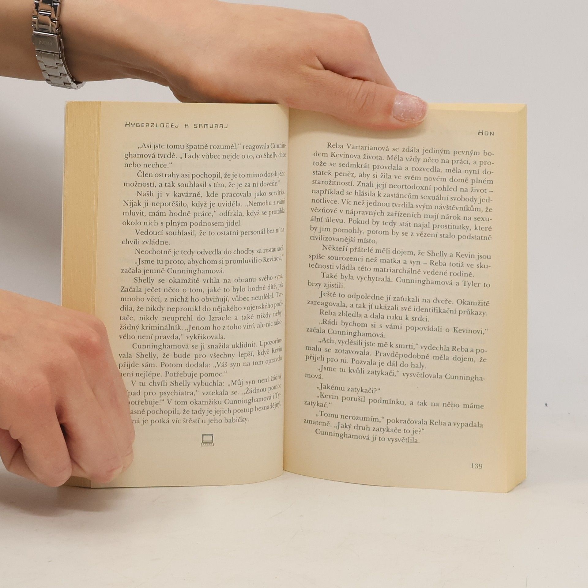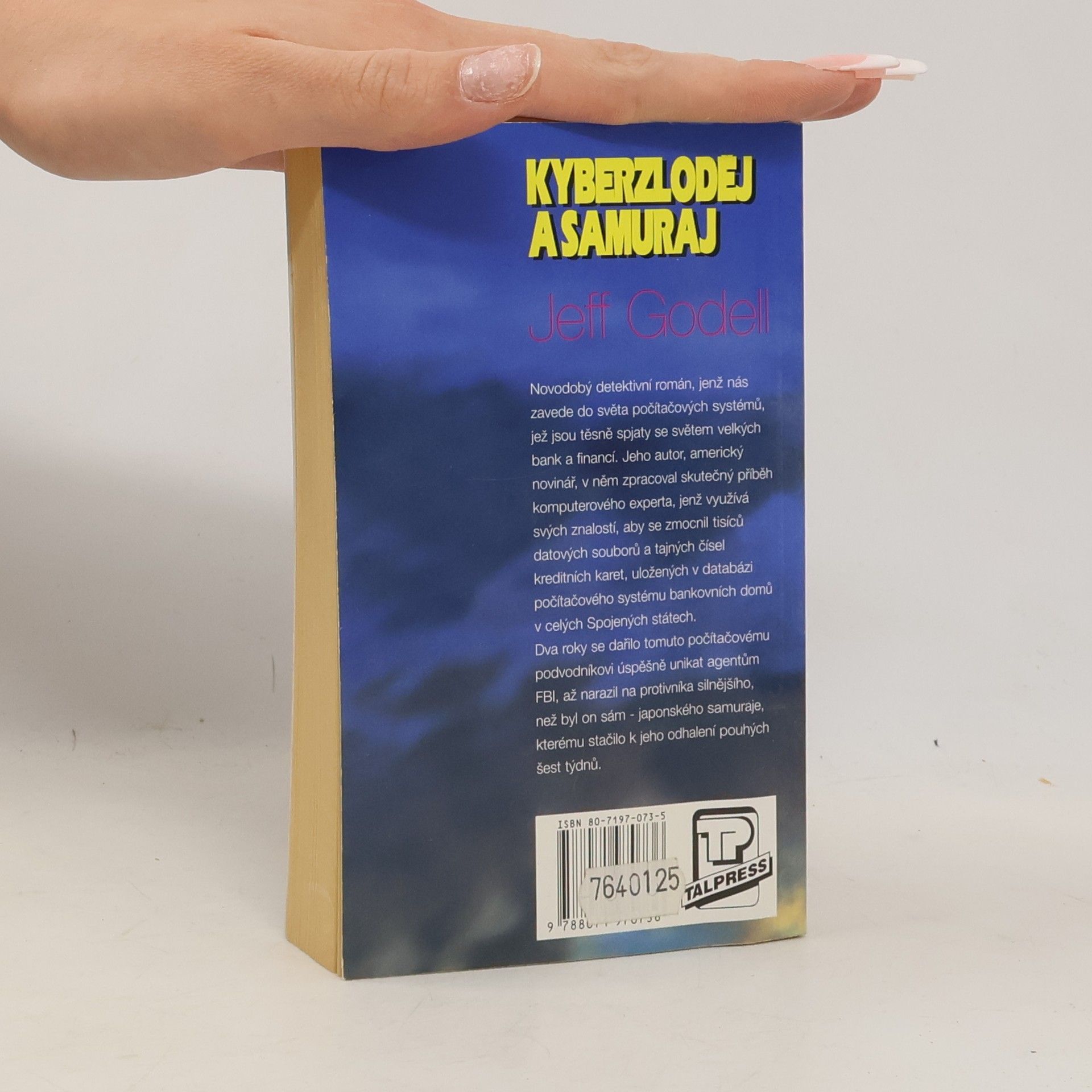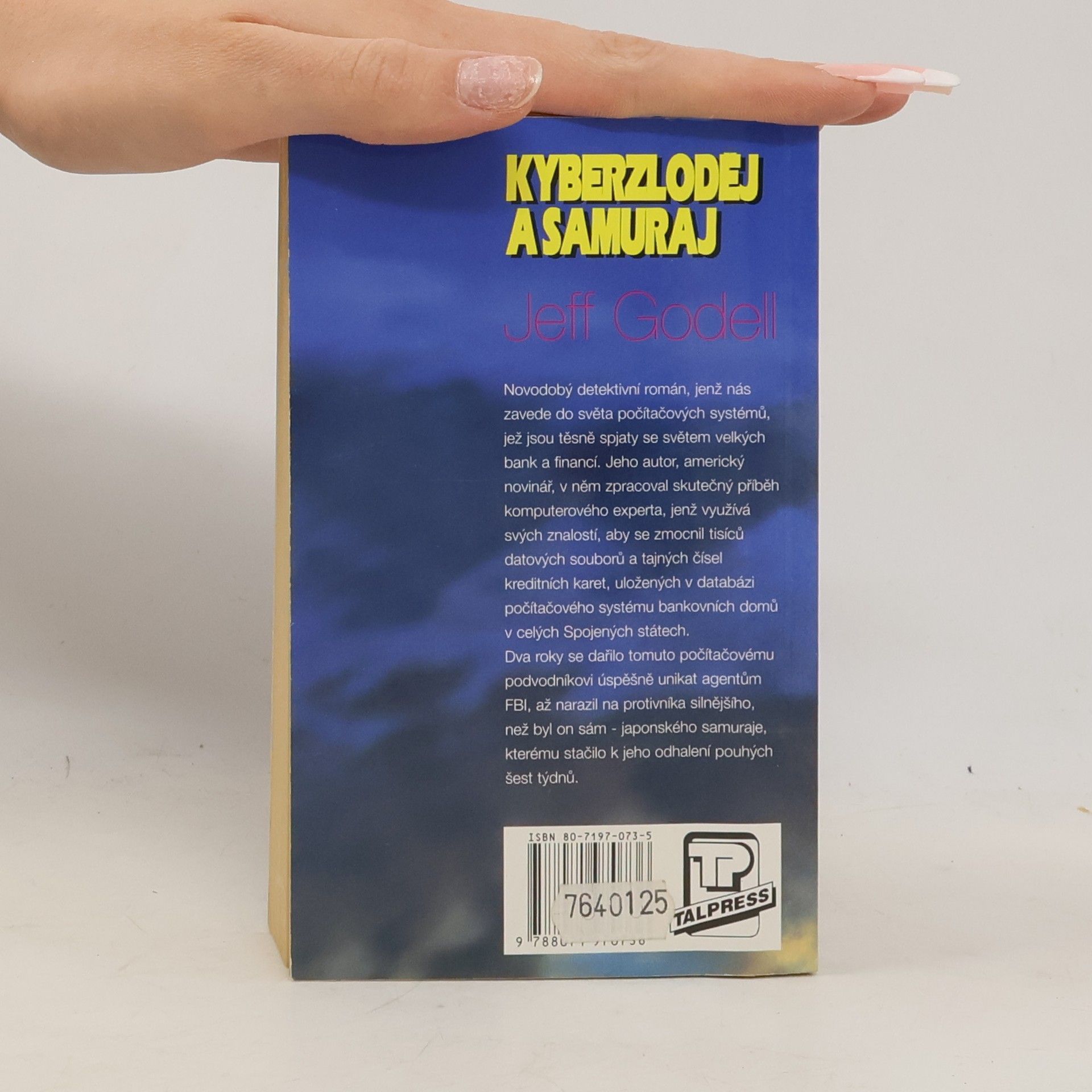 Novodový detektivní román, jenž nás zavede do světa počítačových systémů, jež jsou těsně spjaty se světem velkých bank a financí. Jeho autor, americký novinář, v něm zpracoval skutečný příběh komputerového experta, jenž využívá svých znalostí, aby se zmocnil tisíců datových souborů a tajných čísel kreditních karet, uložených v databázi počítačového systému bankovních domů v celých Spojených státech. Dva roky se dařilo tomuto počítačovému podvodníkovi úspěšně unikat agentům FBI, až narazil na protivníka silnějšího, než byl on sám - japonského samuraje, kterému stačilo k jeho odhalení pouhých šest týdnů.