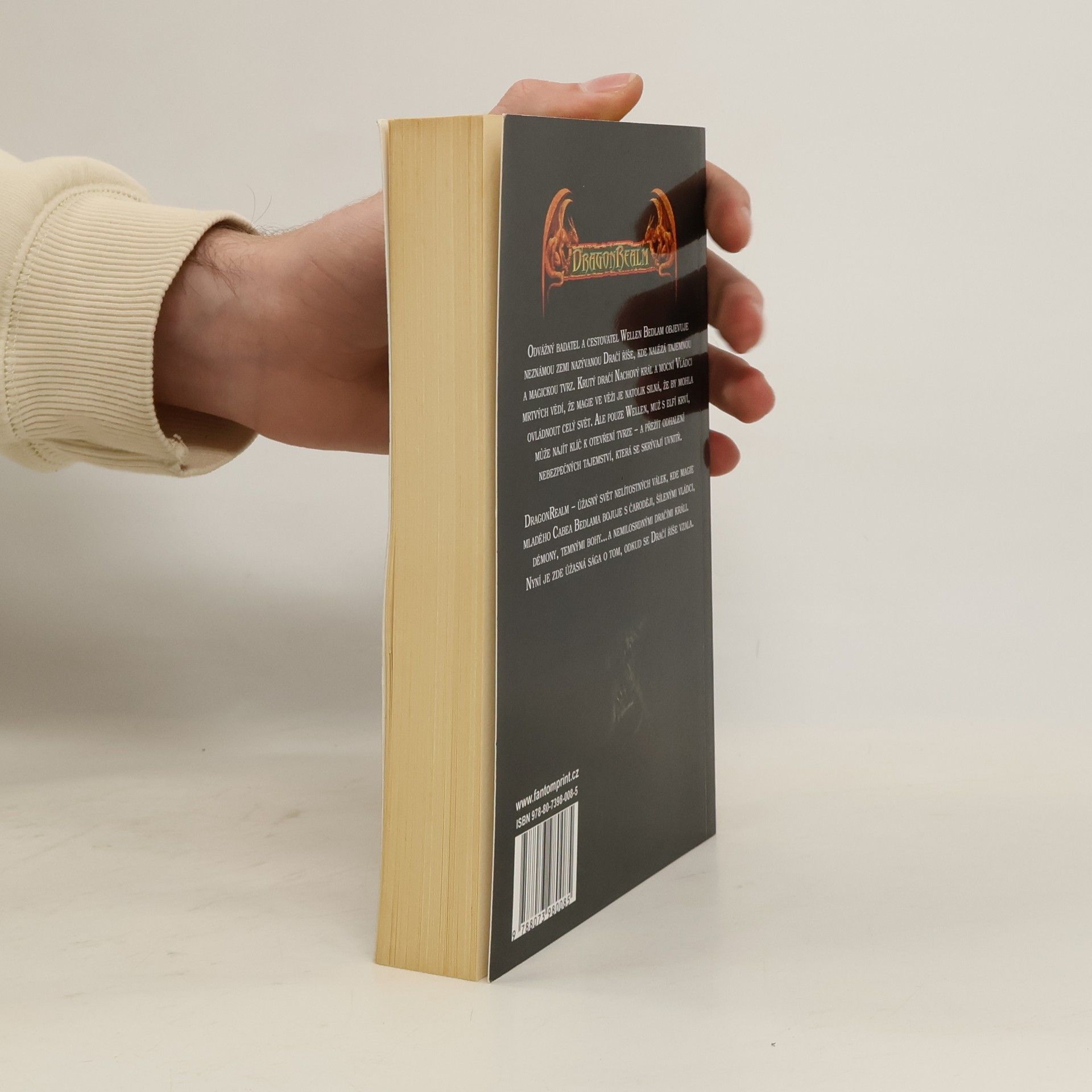 Odvážný badatel a cestovatel Wellen Bedlam objevuje neznámou zemi nazývanou Dračí říše, kde nalézá tajemnou a magickou tvrz. Krutý dračí Nachový král a mocní Vládci mrtvých vědí, že magie ve věži je natolik silná, že by mohla ovládnout celý svět. Ale pouze Wellen, muž s elfí krví, může najít klíč k otevření tvrze - a přežít odhalení nebezpečných tajemství, která se skrývají uvnitř. DragonRealm - úžasný svět nelítostných válek, kde magie mladého Cabea Bedlama bojuje s čaroději, šílenými vládci, démony, temnými bohy... a nemilosrdnými dračími králi. Nyní je zde úžasná sága o tom, odkud se Dračí říše vzala.