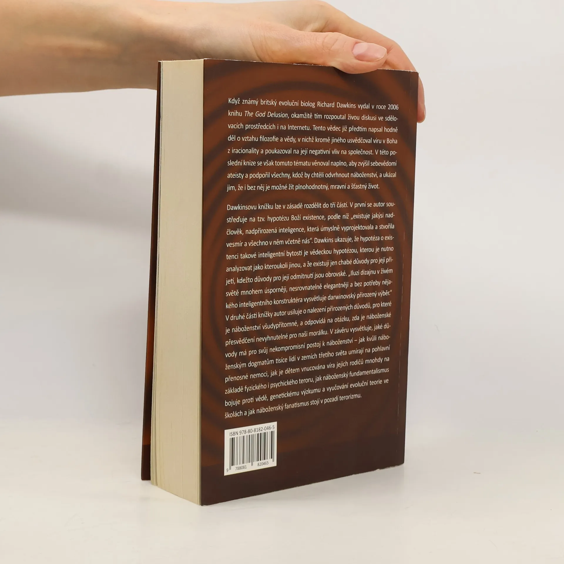 České vydání, 2016 Přináší náboženství útěchu, nebo bolest? Kniha britského evolučního biologa R. Dawkinse odmítá náboženský fundamentalismus a kritizuje všechny ostatní i umírněné podoby náboženství. Považuje je za nebezpečný jev, který omezuje svobodné myšlení lidí. Být o něčem přesvědčen na základě víry je podle Dawkinse v ostrém rozporu s přesvědčením na základě racionálních argumentů. Náboženský dogmatismus pak stojí v jádru dalších problémů – od vyučování zjevných nepravd o původu světa a lidstva až po teroristické útoky. Cílem Dawkinsovy knihy je zvýšit sebevědomí ateistů, jejichž pozice např. v USA je podle autora na úrovni homosexuálů před 50 lety. Dále je kniha určena všem, kteří by chtěli odvrhnout náboženství, ale mají obavy, zda i bez něj je možné žít plnohodnotný, šťastný a mravný život.
