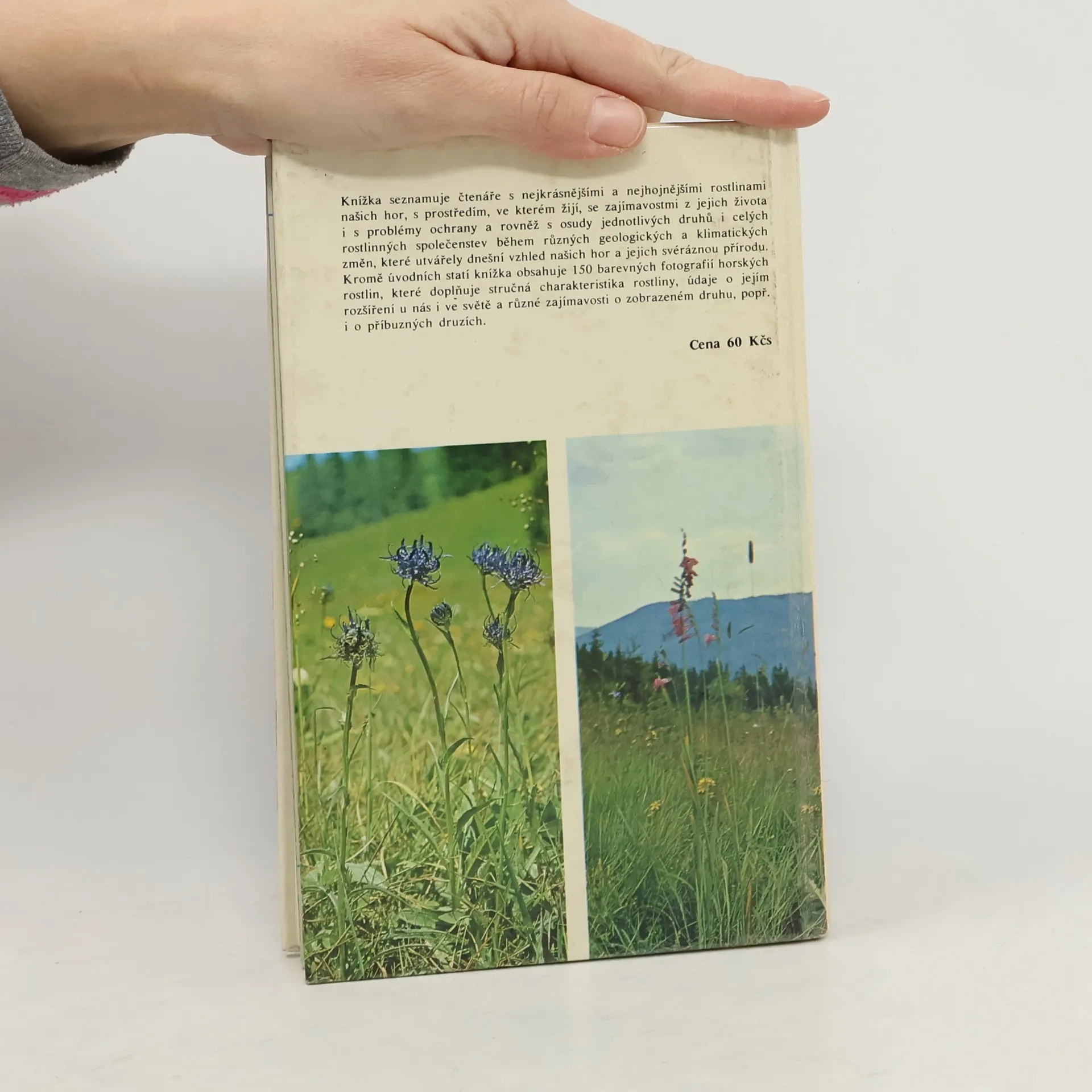 150 barevných fotografií běžných, vzácných i nejvzácnějších rostlin ze všech horstev Československa. Kromě toho obsahuje i informace o historii naší horské flóry, poznatky o vlivu nadmořské výšky i geologického podkladu, základy nauky o rostlinných společenstvech, o přizpůsobivosti rostlin i o jejich ochraně. Dále je zde slovníček nejdůležitějších pojmů z botaniky, fytocenologie a dalších příbuzných věd, rejstřík českých, slovenských a latinských jmen.