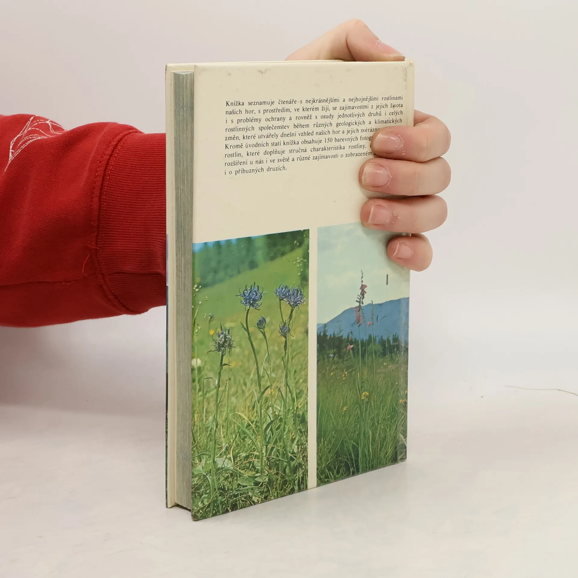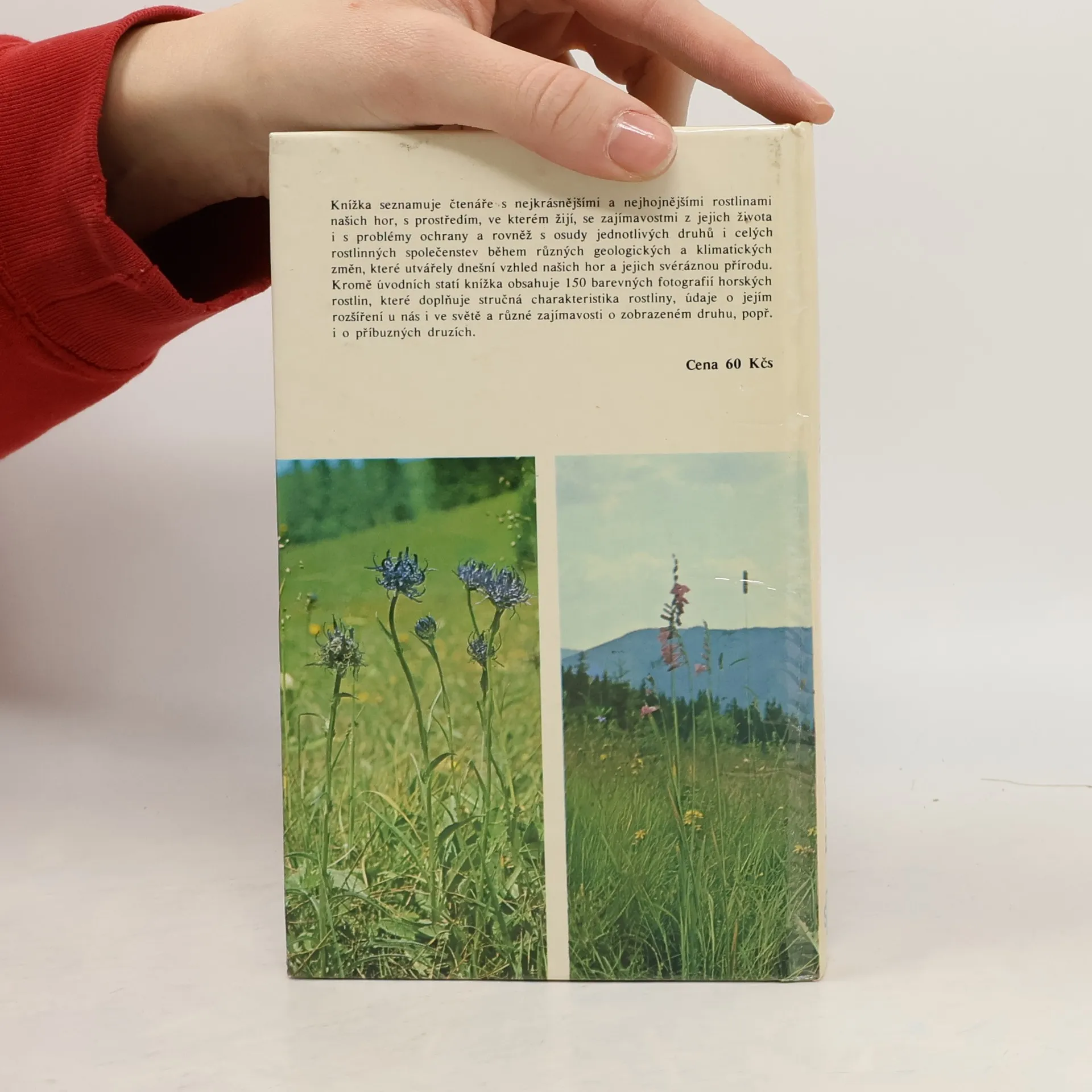 150 barevných fotografií běžných, vzácných i nejvzácnějších rostlin ze všech horstev Československa. Kromě toho obsahuje i informace o historii naší horské flóry, poznatky o vlivu nadmořské výšky i geologického podkladu, základy nauky o rostlinných společenstvech, o přizpůsobivosti rostlin i o jejich ochraně. Dále je zde slovníček nejdůležitějších pojmů z botaniky, fytocenologie a dalších příbuzných věd, rejstřík českých, slovenských a latinských jmen.