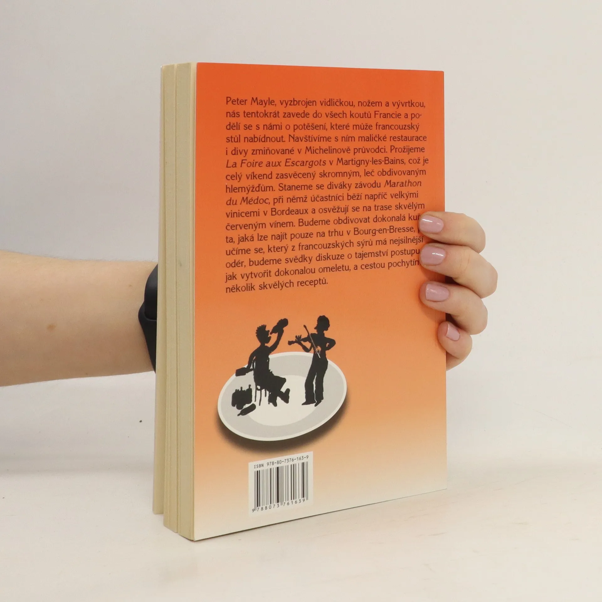 Peter Mayle, vyzbrojen vidličkou, nožem a vývrtkou, nás tentokrát zavede do všech koutů Francie a podělí se s námi o potěšení, které může francouzský stůl nabídnout. Navštívíme s ním maličké restaurace i divy zmiňované v Michelinově průvodci. Prožijeme Foire aux Escargots v Martigny-les-Bains, což je celý víkend zasvěcený skromným, leč obdivovaným hlemýžďům. Staneme se diváky závodu Marathon du Médoc, při němž účastníci běží napříč velkými vinicemi v Bordeaux a osvěžují se na trase skvělým červeným vínem. Poznáme pamětihodnou provensálskou rybí polévku bouillabaisse v restauraci na jedné z pláží Côte d’Azur a budeme obdivovat dokonalá kuřata, jaká lze najít pouze na trhu v Bourg-en-Bresse. Poučíme se, který z francouzských sýrů má nejsilnější odér a samozřejmě získáme řadu skvělých receptů.