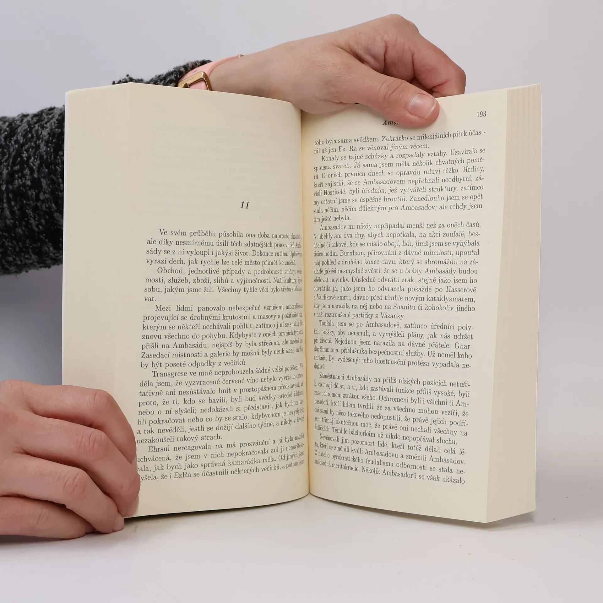 Ambasadov: město protikladů na samém okraji vesmíru. Avice je immernautka, cestovatelka immerem, mořem mezihvězdného prostoru a času mimo každodennost, která se nyní vrátila na svou rodnou planetu. Na Ariece lidé nejsou jediní zástupci inteligentního života a s domorodci, záhadnými Hostiteli, kteří neumějí lhát, má právě Avice jistou zvláštní vazbu. Jazykem Ariekanů je schopna mluvit pouze nepočetná skupina jedinečných lidských Ambasadorů, kteří tak propojují obě společenství. Nyní však na Arieku přiletěl nepředstavitelný nový Ambasador… a když promluví, všechno se rázem mění. Ambasadovu hrozí katastrofa. Avice ví, že jim nezbývá jiná naděje, než aby promluvila přímo s nelidskými Hostiteli. A to je nemožné.