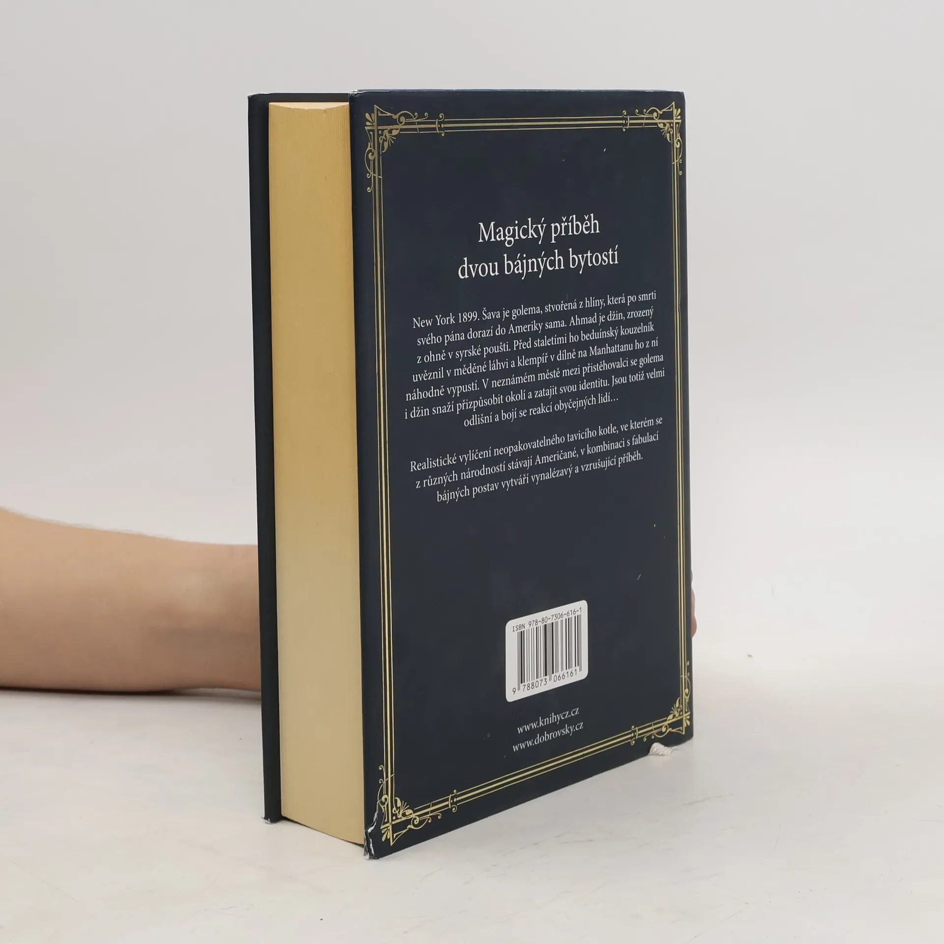 V New Yorku roku 1899 se záhadným způsobem ocitnou dvě nadpřirozené bytosti. Šava je golema, stvořená z hlíny, která po smrti svého pána dorazí do Ameriky sama. Ahmad je džin, zrozený z ohně v syrské poušti. Před staletími ho beduínský kouzelník uvěznil v měděné láhvi a klempíř v dílně na Manhattanu ho z ní náhodně vypustí. V neznámém městě mezi přistěhovalci se golema i džin snaží přizpůsobit okolí a zatajit svou totožnost. Jsou totiž velmi odlišní a bojí se reakcí obyčejných lidí… Realistické vylíčení neopakovatelného tavicího kotle, ve kterém se z různých národností stávají Američané, v kombinaci s čirou fabulací bájných postav, vytváří vynalézavý a vzrušující příběh.