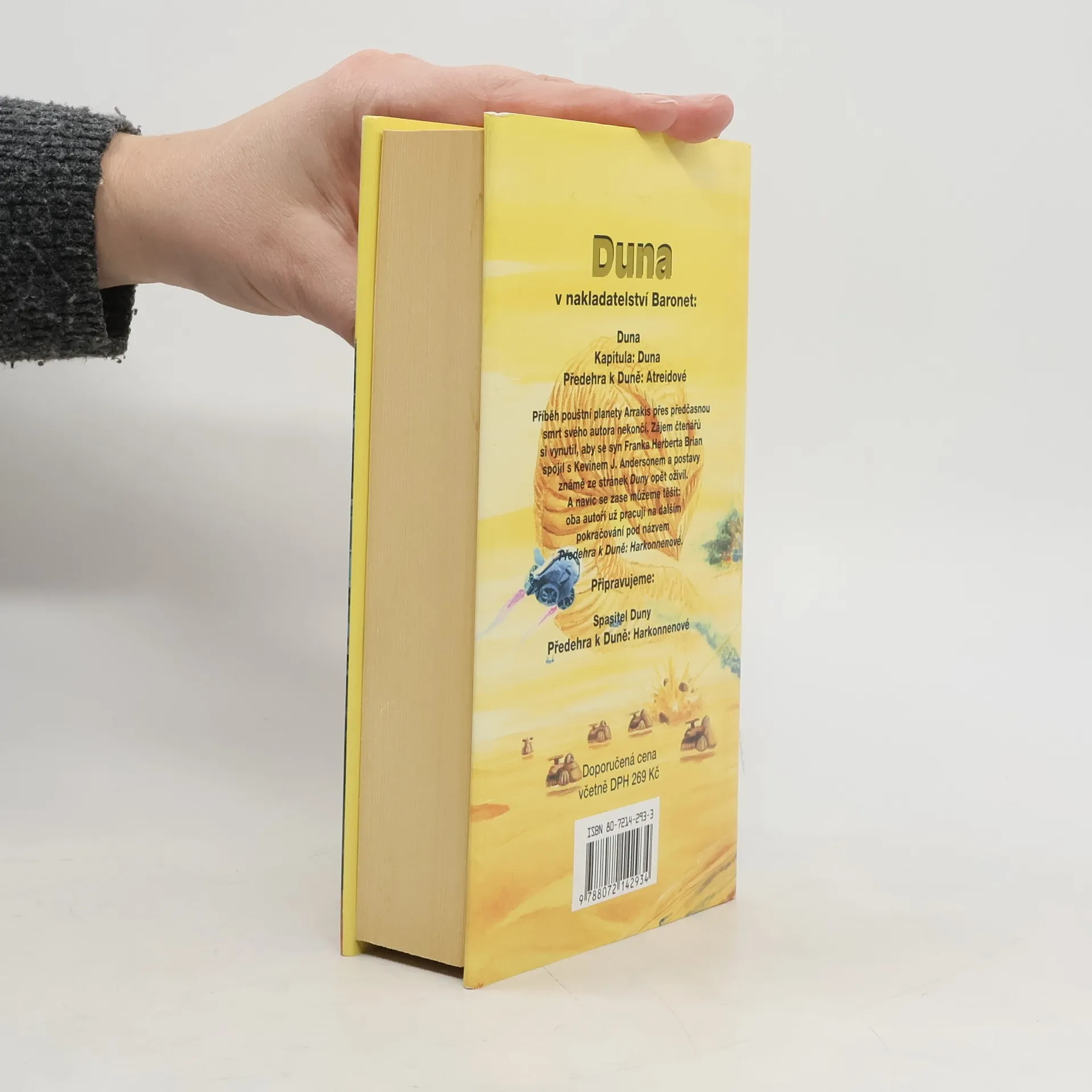 První díl kultovní ságy (volně pokračuje tituly "Předehra k Duně: Harkonnenové", "Předehra k Duně: Corrinové", "Historie Duny: Služebnický džihád", "Historie Duny: Křížová výprava strojů", "Historie Duny: Bitva o Corrin" a "Lovci Duny"). Na pouštní planetě Arrakis se nachází velmi vzácné koření, které se stává drogou a prodlužuje lidský život. Události se odehrávají přibližně 30 let před začátkem Duny a je zde nastíněna nenávist dvou velkých mocných rodů.