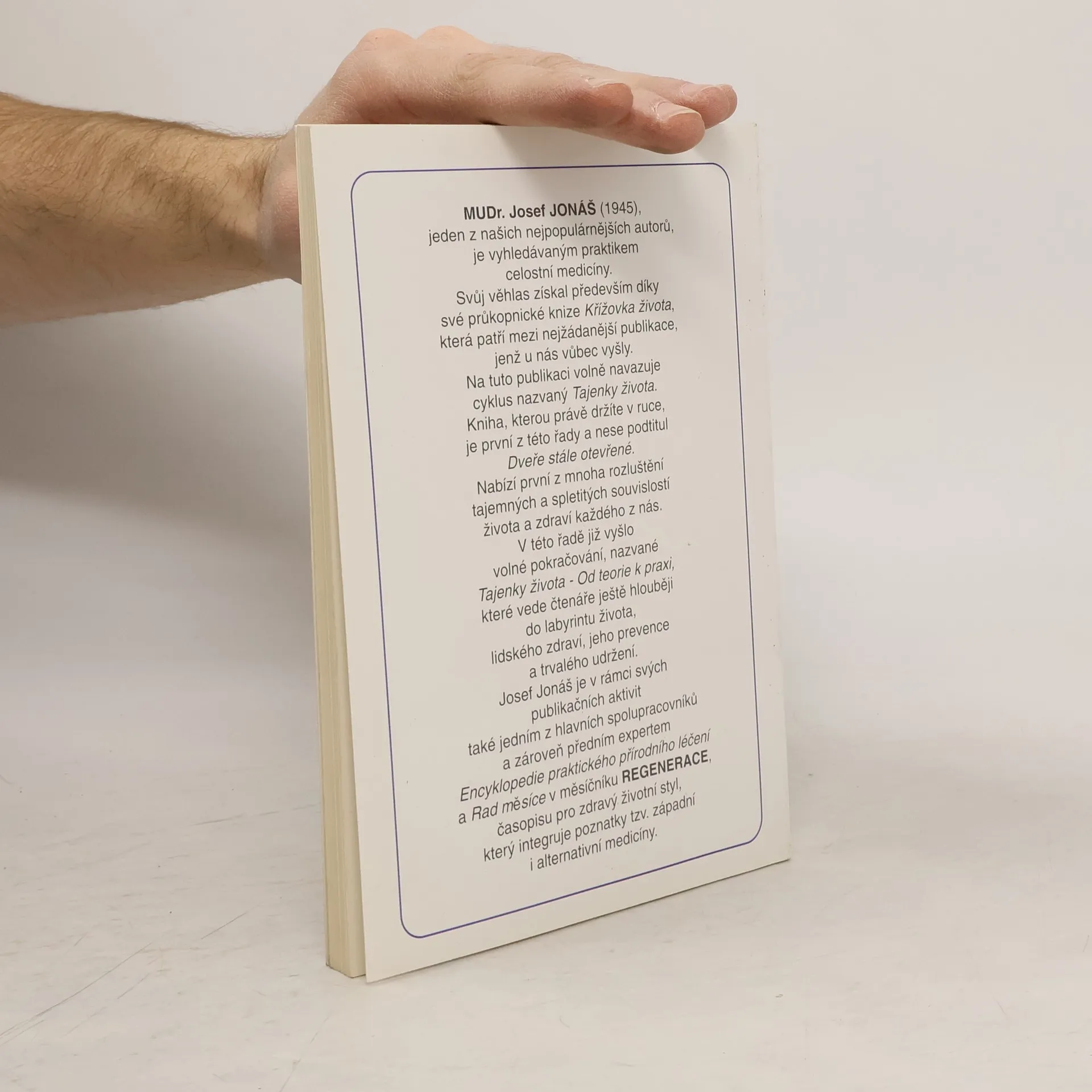 Po legendární knize Křížovka života přichází známý lékař celostní medicíny MUDr. Josef Jonáš s volným pokračováním, které zavádí čtenáře hlouběji do spletitých vztahů a souvislostí zdraví a nemoci. Na tento díl navazuje publikace Tajenky života 2. Josef Jonáš pravidelně publikuje své nejnovější poznatky v měsíčníku REGENERACE.