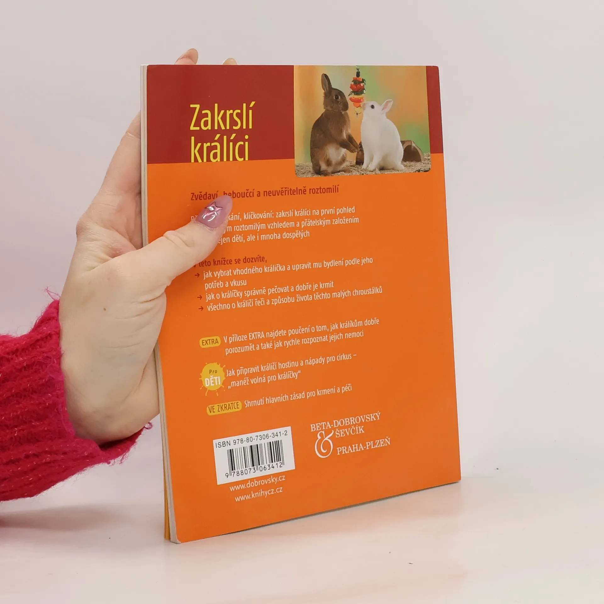 V této knížce se dozvíte vše o výběru vhodných trpasličích plemen i o tom, jaké optimální prostředí jim vytvořit, jak a čím je krmit a jak o ně náležitě pečovat. V příloze Extra najdete poučení o tom, jak králíkům dobře porozumět a také jak rychle rozpoznat jejich nemoci.