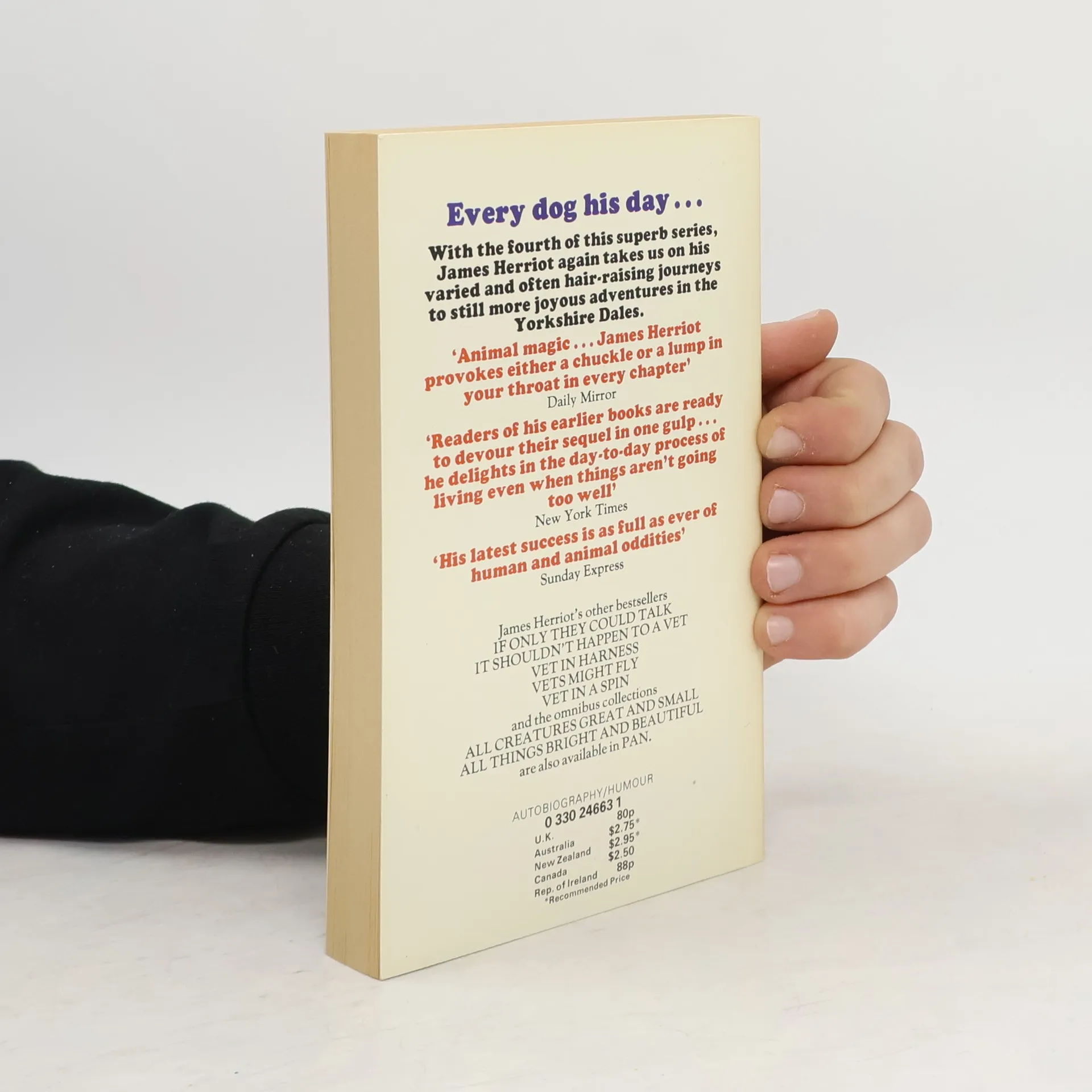 The Yorkshire Dales have never seemed more beautiful for James. Now he is married with a partner's plate on the gate and the usual menagerie of animals and owners demanding his constant attention. Herriot's book form the basis of the popular BBC TV series "All creatures great and small".