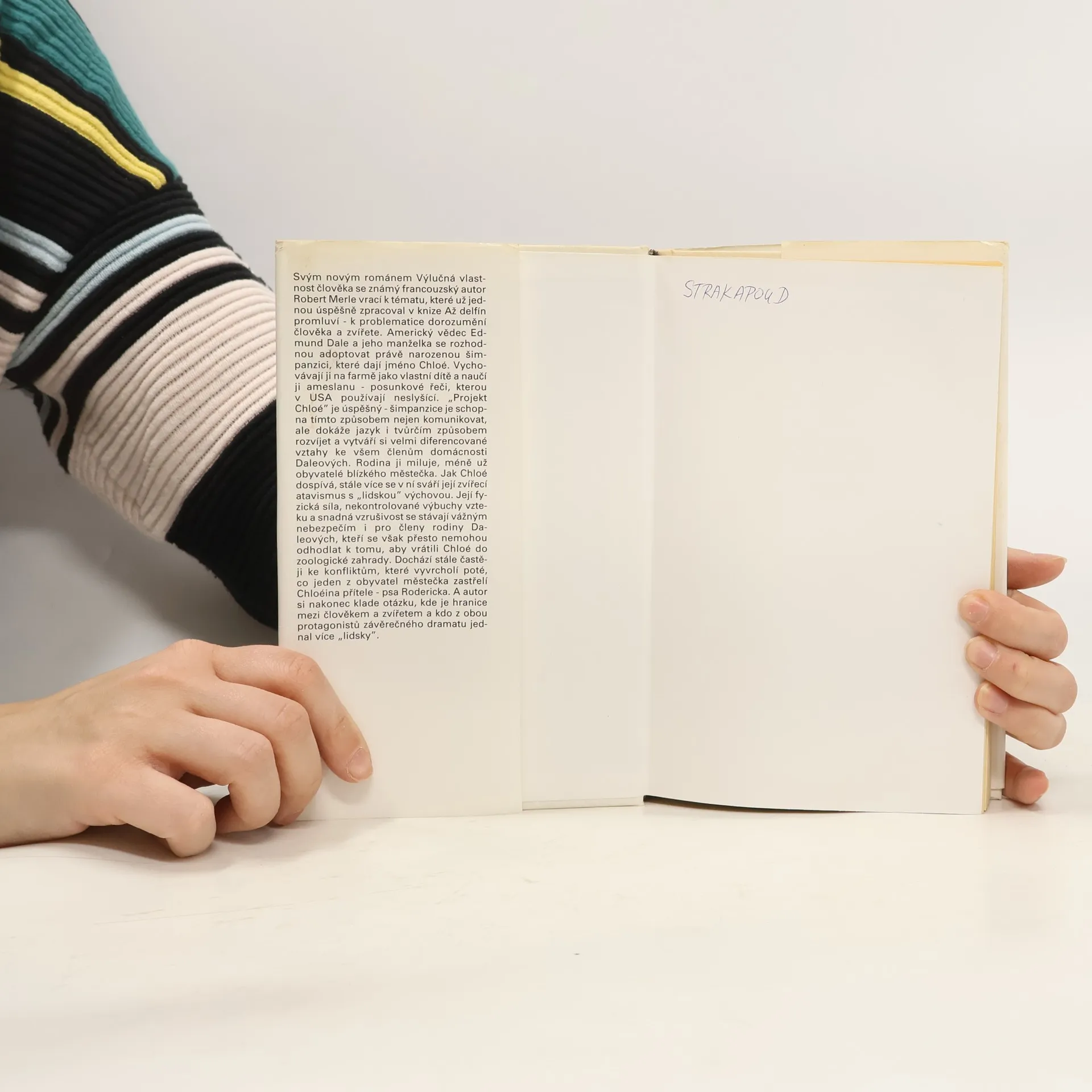 Autor se znovu vrací k problematice dorozumění člověka a zvířete. Americký vědec a jeho manželka se rozhodnou adoptovat právě narozenou šimpanzici Chloé a naučí ji posunkovou řeč. S dospíváním Chloé však nastávají v rodině i okolí stále větší problémy. Román byl i filmově zpracován.