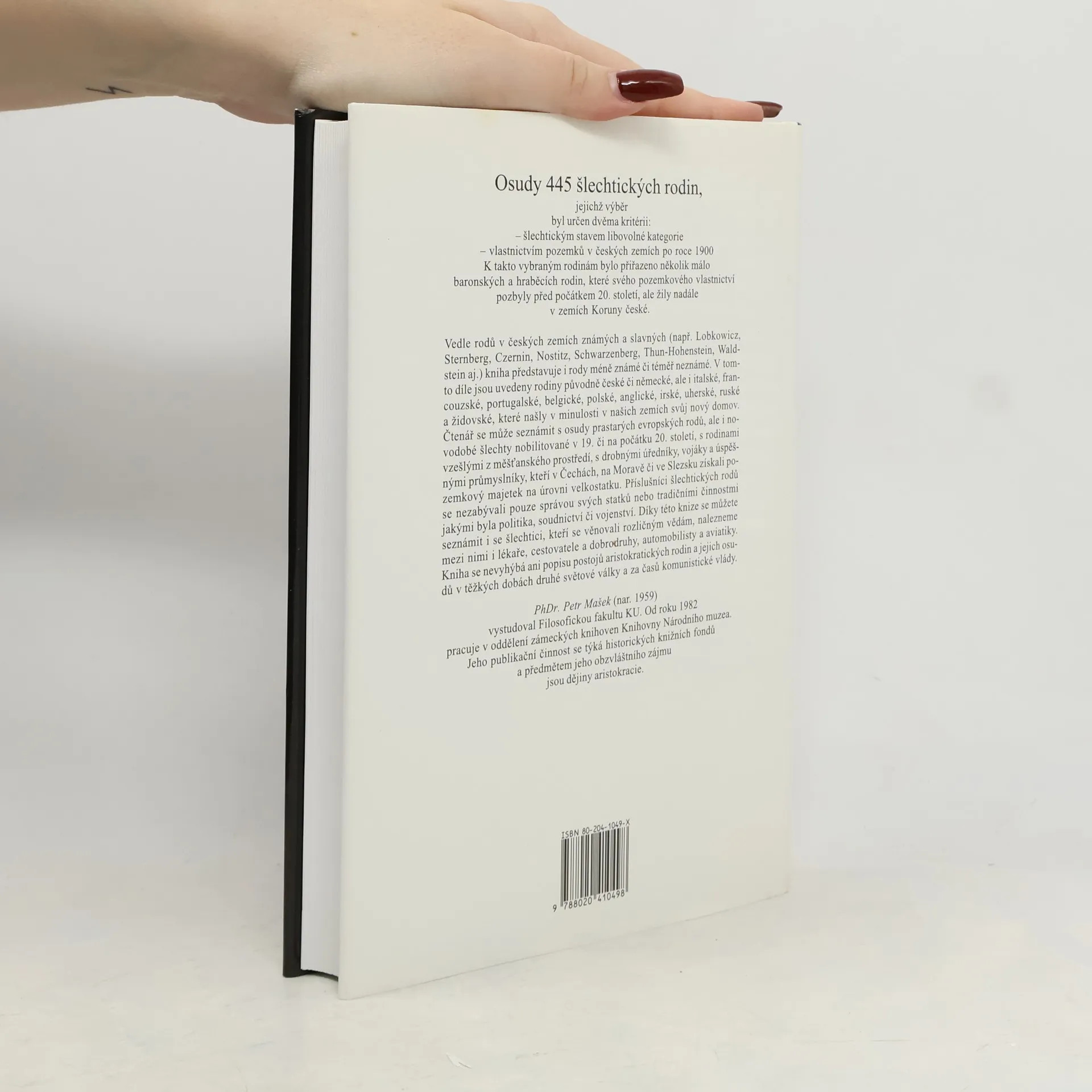 Osudy 445 šlechtických rodin, jejichž výběr byl určen dvěma kritérii: šlechtickým stavem libovolné kategorie a vlastnictvím pozemků v českých zemích po roce 1900. K takto vybraným rodinám bylo přiřazeno několik málo baronských a hraběcích rodin, které svého pozemkového vlastnictví pozbyly již před počátkem 20. století, ale žily nadále v zemích Koruny české.