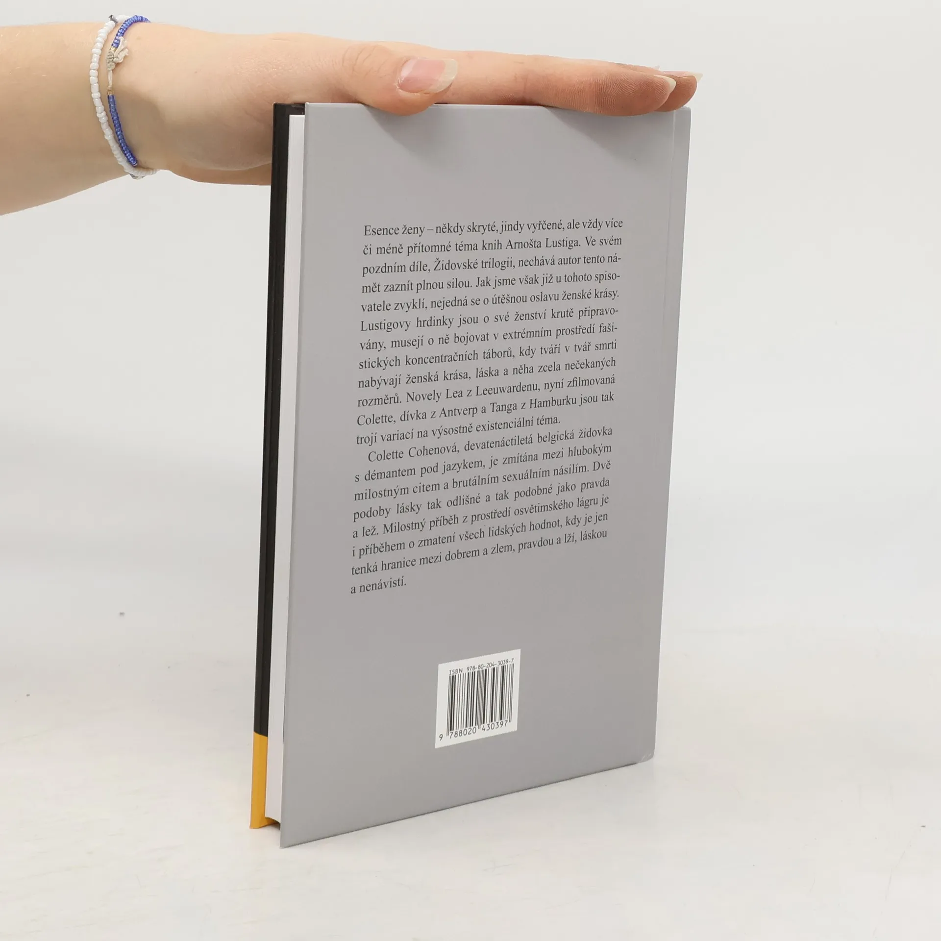 Esence ženy – někdy skryté, jindy vyřčené, ale vždy více či méně přítomné téma knih Arnošta Lustiga. Ve svém pozdním díle, Židovské trilogii, nechává autor tento námět zaznít plnou silou. Jak jsme však již u tohoto spisovatele zvyklí, nejedná se o útěšnou oslavu ženské krásy. Lustigovy hrdinky jsou o své ženství krutě připravovány, musejí o ně bojovat v extrémním prostředí fašistických koncentračních táborů, kdy tváří v tvář smrti nabývají ženská krása, láska a něha zcela nečekaných rozměrů. Novely Lea z Leeuwardenu, Colette, dívka z Antverp a Tanga z Hamburku jsou tak trojí variací na výsostně existenciální téma. Colette Cohenová, devatenáctiletá belgická židovka s démantem pod jazykem, je zmítáná mezi hlubokým milostným citem a brutálním sexuálním násilím. Dvě podoby lásky tak odlišné a tak podobné jako pravda a lež. Milostný příběh z prostředí osvětimského lágru je tak i příběhem o zmatení všech lidských hodnot, kdy je jen tenká hranice mezi dobrem a zlem, pravdou a lží, láskou a nenávistí