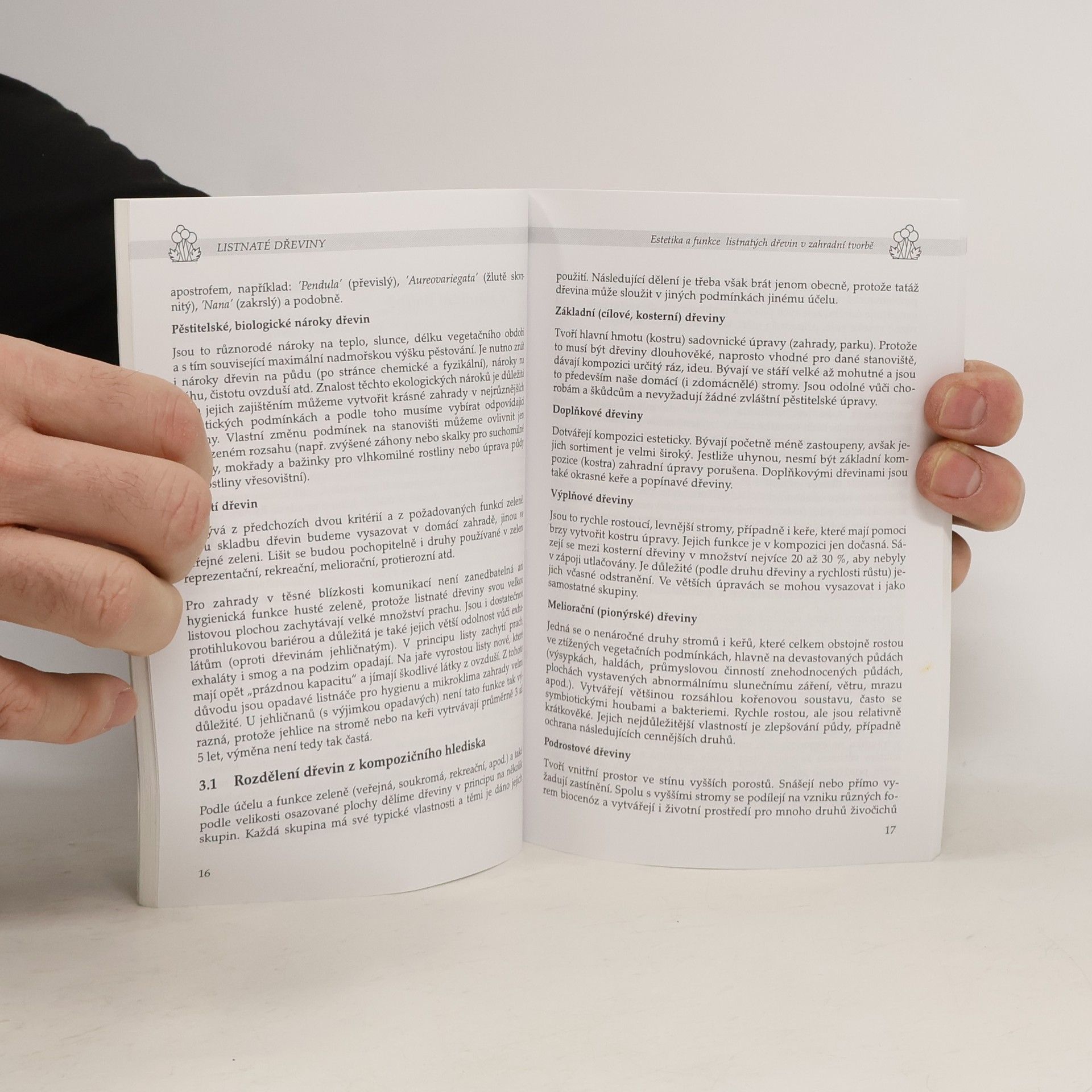 Zkušený autor a pěstitel představuje čtenářům v prvním díle věnovaném listnatým dřevinám nejkrásnějšími druhy a kultivary menších keřovitých stromů a opadavých keřů. V úvodní části se zabývá rozdělením dřevin z kompozičního hlediska a způsobem použití dřevin, výsadbou, rozmnožováním a rajonizací, v hlavní části se pak soustřeďuje na jednotlivé druhy a kultivary listnatých dřevin vhodných do našich klimatických podmínek. U každého z uváděných druhů je zaznamenán původ, stručný botanický popis, nároky, použití, způsob rozmnožování. Text doplňuje minislovníček odborných výrazů a přehled specializovaných firem. Svým přehledným abecedním řazením, latinským a českým rejstříkem a bohatou obrazovou přílohou se tato publikace jistě stane vítanou příručkou pro ty, kdo si chtějí rozšířit sortiment pěstovaných dřevin.