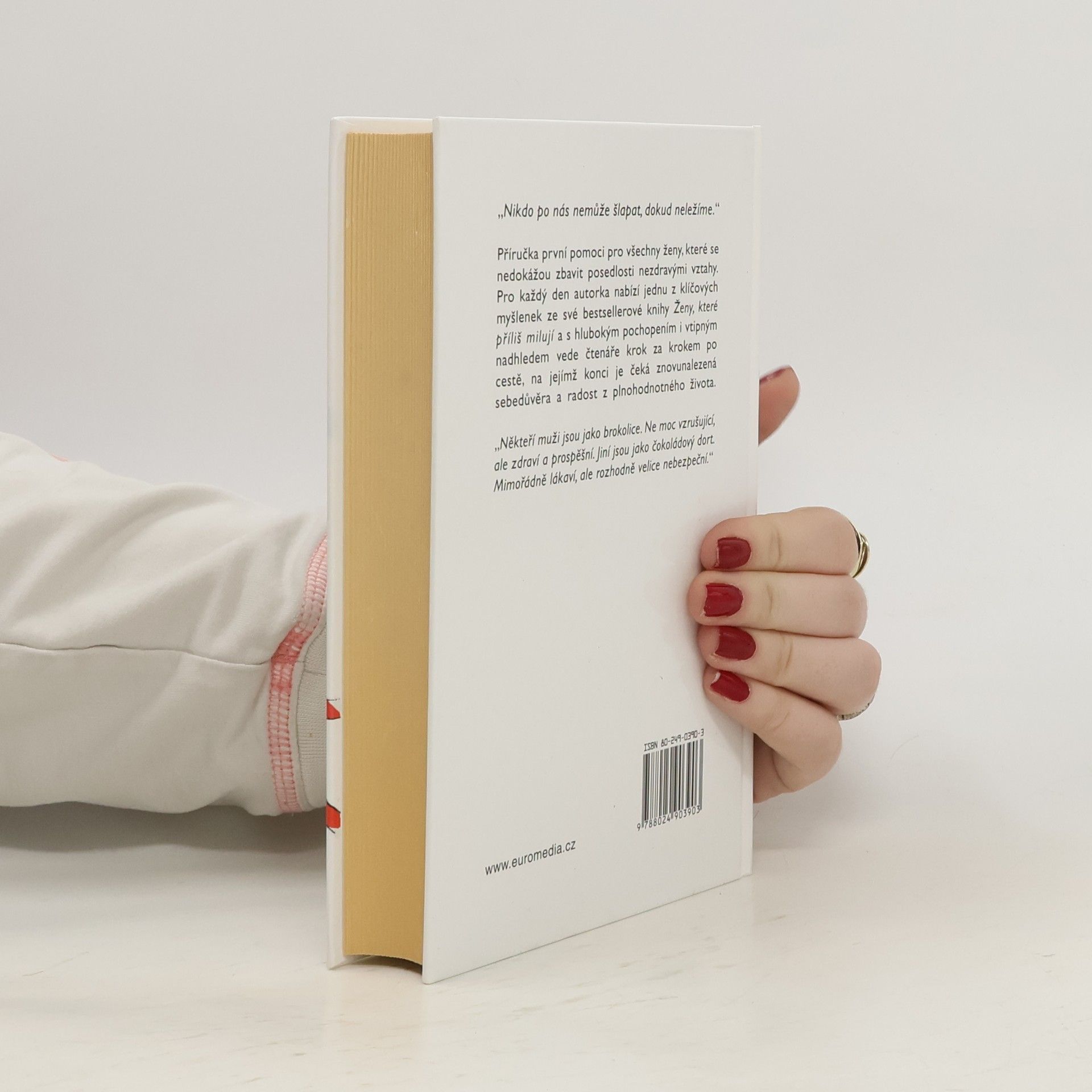 Příručka první pomoci pro všechny ženy, které se nedokážou zbavit posedlosti nezdravými vztahy. Pro každý den autorka nabízí jednu z klíčových myšlenek ze své bestsellerové knihy Ženy, které příliš milují a s hlubokým pochopením i vtipným nadhledem vede čtenáře krok za krokem po cestě, na jejímž konci je čeká znovunalezená sebedůvěra a radost z plnohodnotného života.