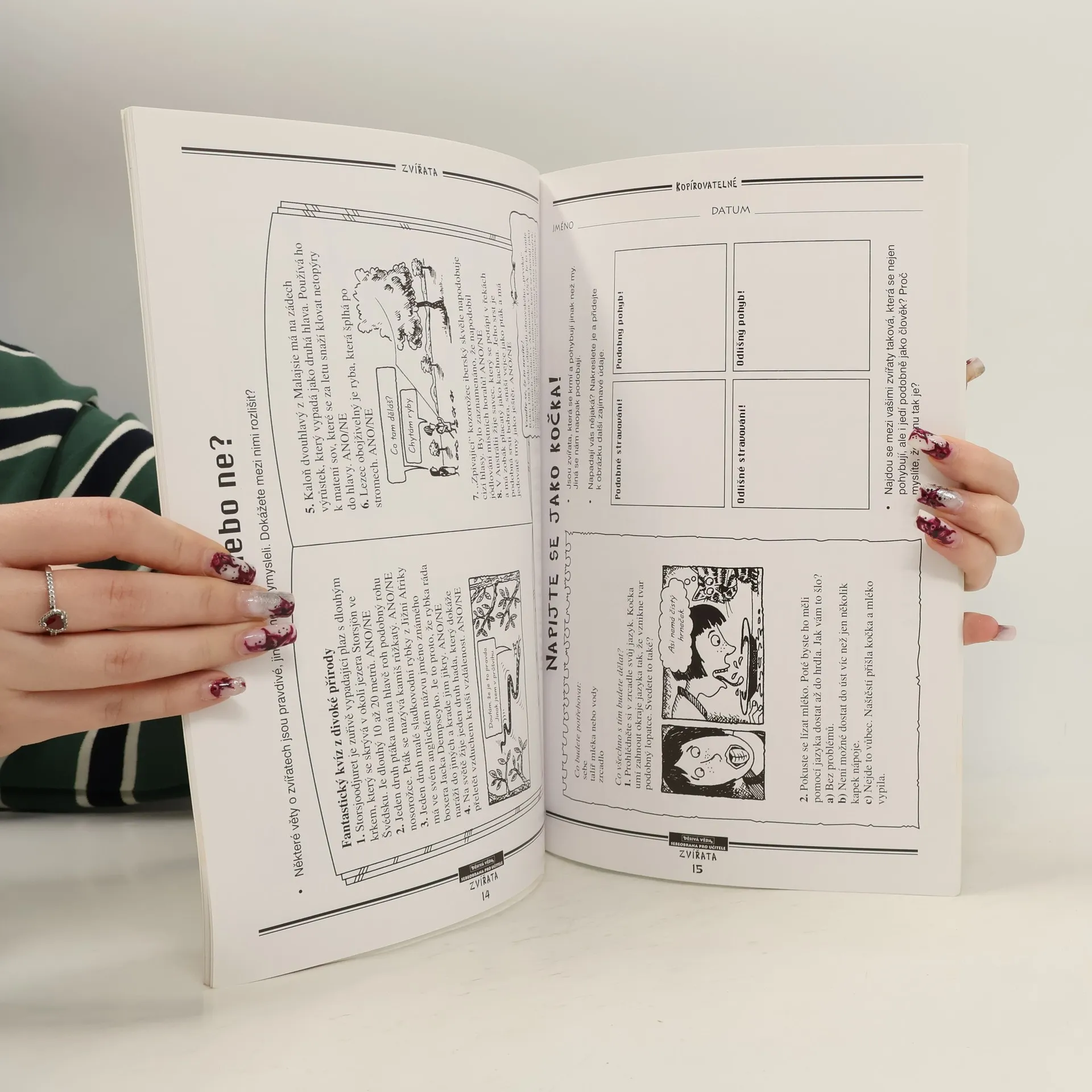 48 stran zábavných a zajímavých úloh o živočiších, rozdílech a podobnostech mezi nimi, jejich životních cyklech a přizpůsobování prostředí, v němž žijí.
