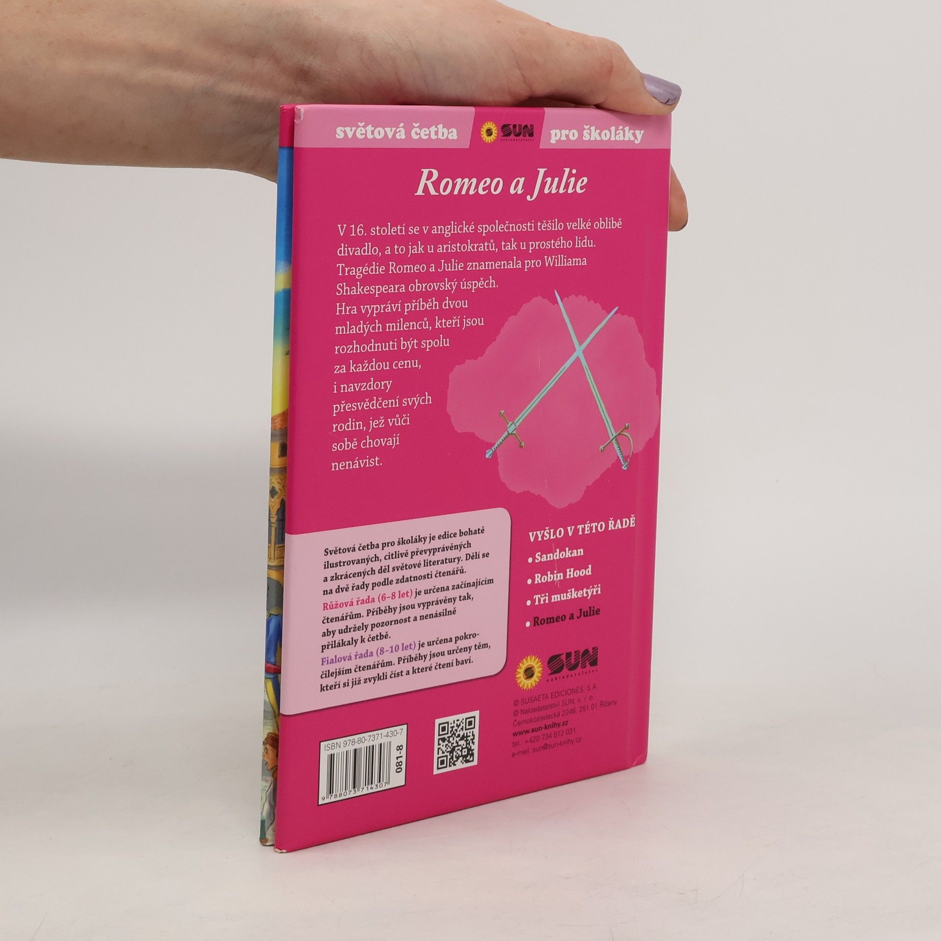 Světová četba pro školáky je edice bohatě ilustrovaných, citlivě převyprávěných a zkrácených děl světové literatury. Hlavními postavami je chlapec Romeo a dívka Julie, kteří jsou do sebe bláznivě zamilovaní. A to i přes nepřízeň svých rodin. ( asi od 8 do 10 let )