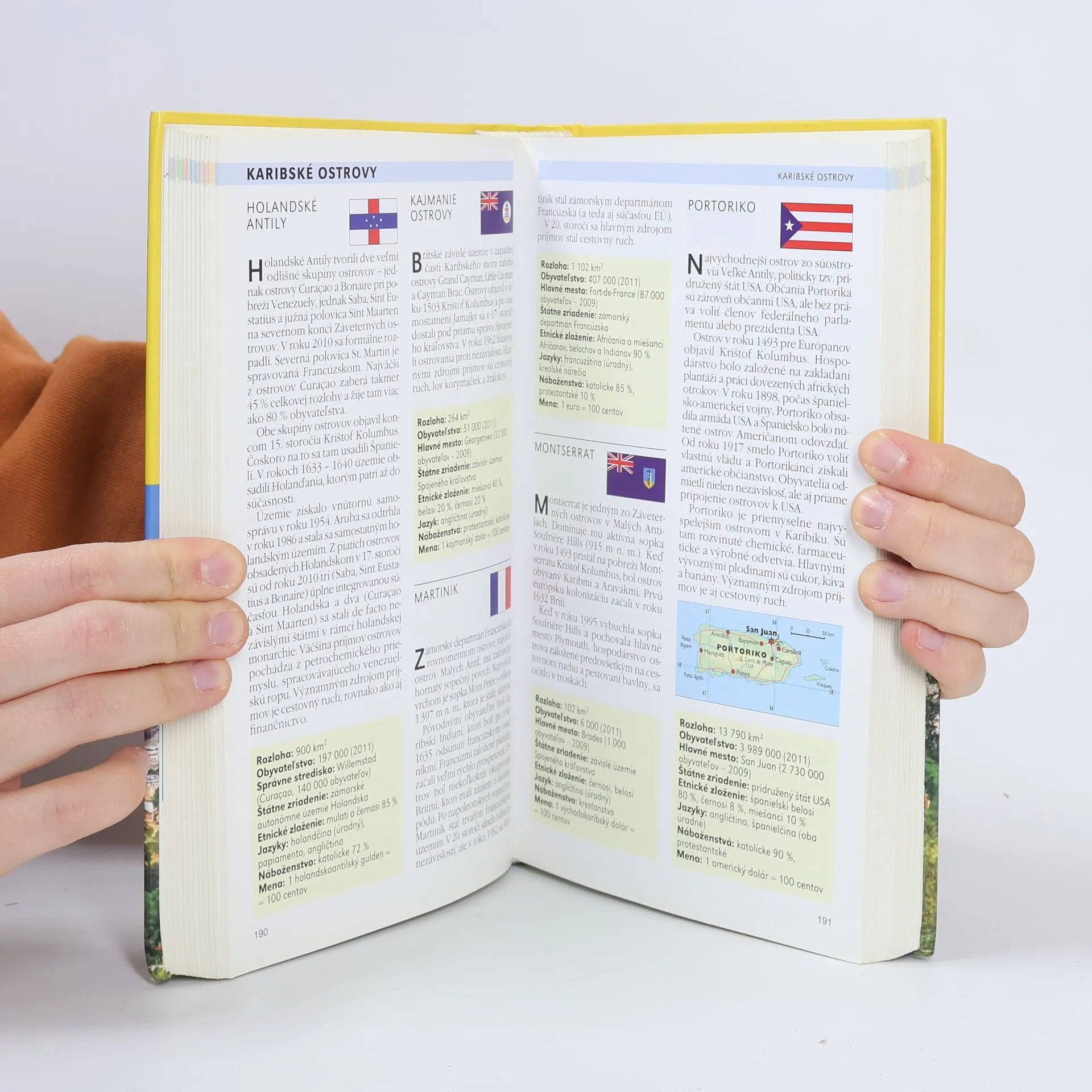 Základné informácie o každej krajine: rozloha, hlavné mesto, počet obyvateľov, štátne zriadenie, etnické zloženie, miestne jazyky, náboženstvo a mena. - Chrakterisktika prírodných podmienok jednotlivých štátov doplnená klimatickým grafom. - Stručné dejiny, súčasná politická a ekonomická situácia. - Orientačné mapy zobrazujúce polohu štátu na zemeguli. - Politické mapy s vyznačením susedných krajín, hlavných a väčších miest, významných komunikácií, riek a vodných plôch. - Národné vlajky a charakteristika ich pôvodu, významu farieb či symbolov.