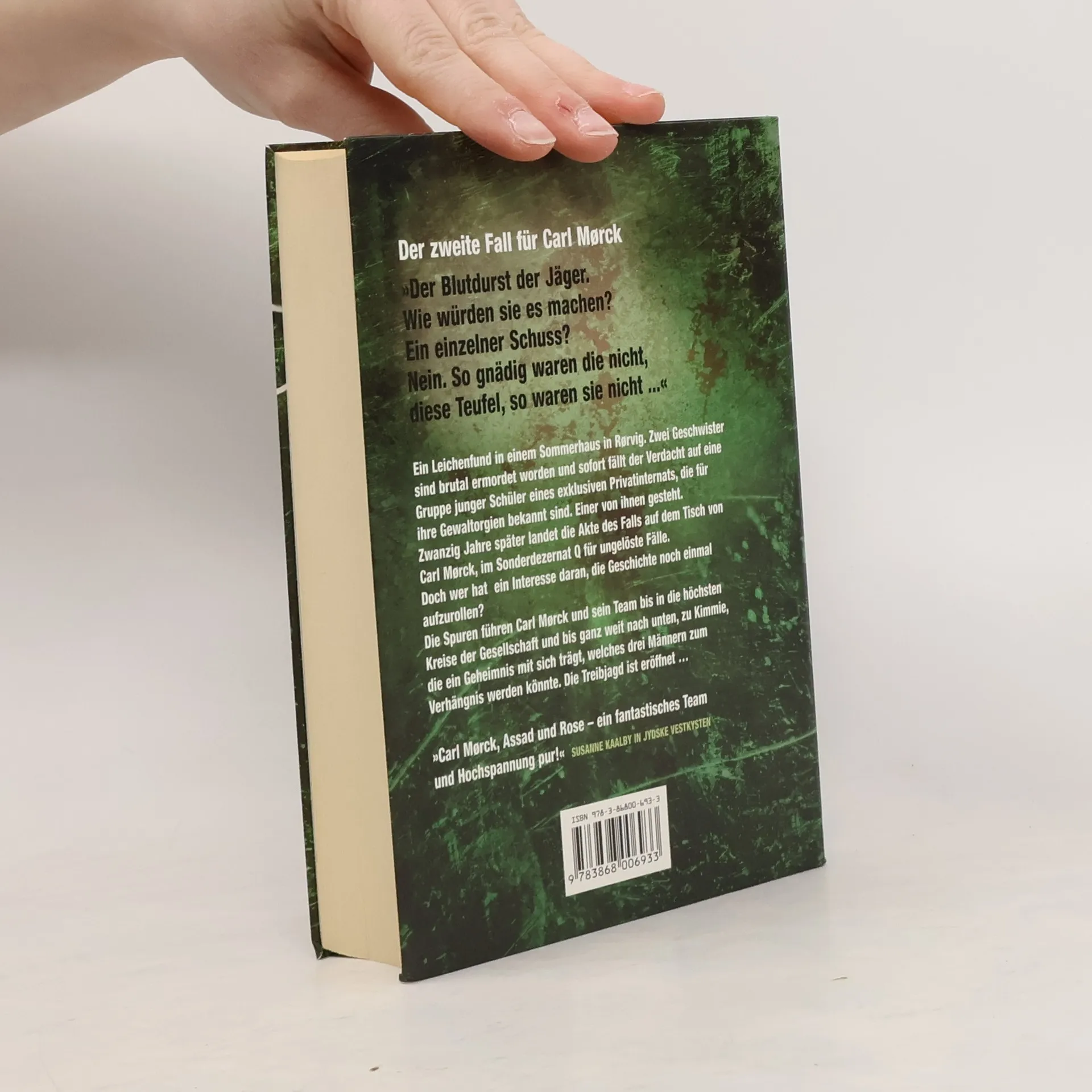 »Der Blutdurst der Jäger. Wie würden sie es machen? Ein einzelner Schuss? Nein. So gnädig waren die nicht, diese Teufel, so waren sie nicht ...« Ein Leichenfund in einem Sommerhaus in Rørvig. Zwei Geschwister sind brutal ermordet worden. Der Verdacht fällt auf eine Gruppe junger Schüler eines exklusiven Privatinternats, die für ihre Gewaltorgien bekannt sind. Einer von ihnen gesteht. Zwanzig Jahre später. Nachdem Carl Mørck aus dem Urlaub zurückkommt, stößt ihn sein Assistent Assad mit der Nase auf die verstaubte Rørvig-Akte. Doch von oberster Stelle werden ihnen weitere Ermittlungen verboten. Carl und Assad ist klar, dass hier etwas zum Himmel stinkt: Die Spuren führen hinauf bis in die höchsten Kreise der Gesellschaft, in die Welt der Aktienhändler, Reeder und Schönheitschirurgen - und sie führen ganz weit nach unten, in die Abgründe der Gesellschaft, zu einer Obdachlosen: äußerlich hart wie Granit, doch mit einer blutenden Seele ...