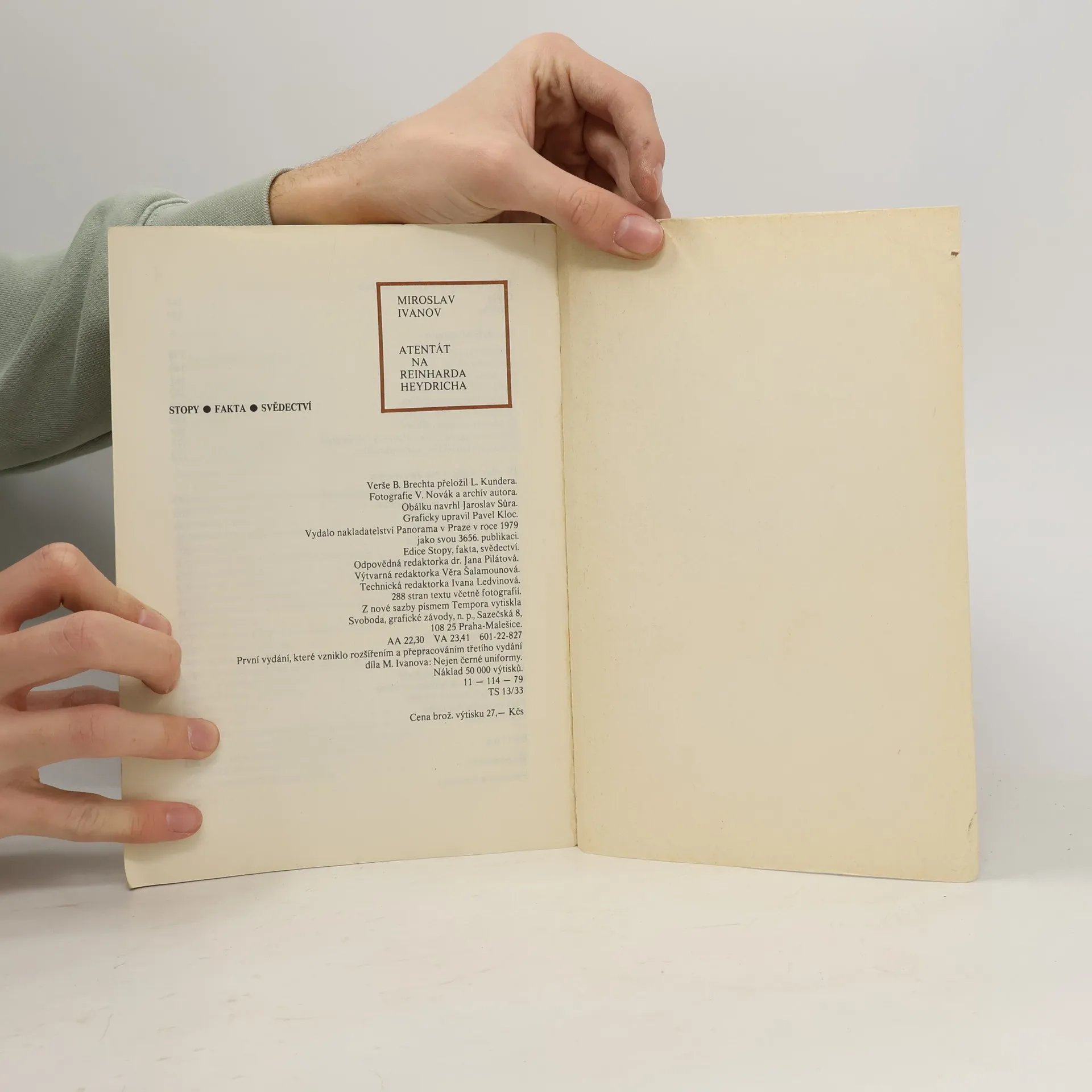 Stopy,fakta,svědectví, verše B.Brechta přeložil L.Kundera, fotografie V.Novák a archiv autora Podrobná rekonstrukce atentátu na zastupujícího říšského protektora, provedeného českými výsadkáři 27. května 1942. Kniha o hrdinném činu, který odstartoval kruté represe nacistického režimu, patří k nejčtenějším titulům našeho nejvýznamnějšího autora literatury faktu