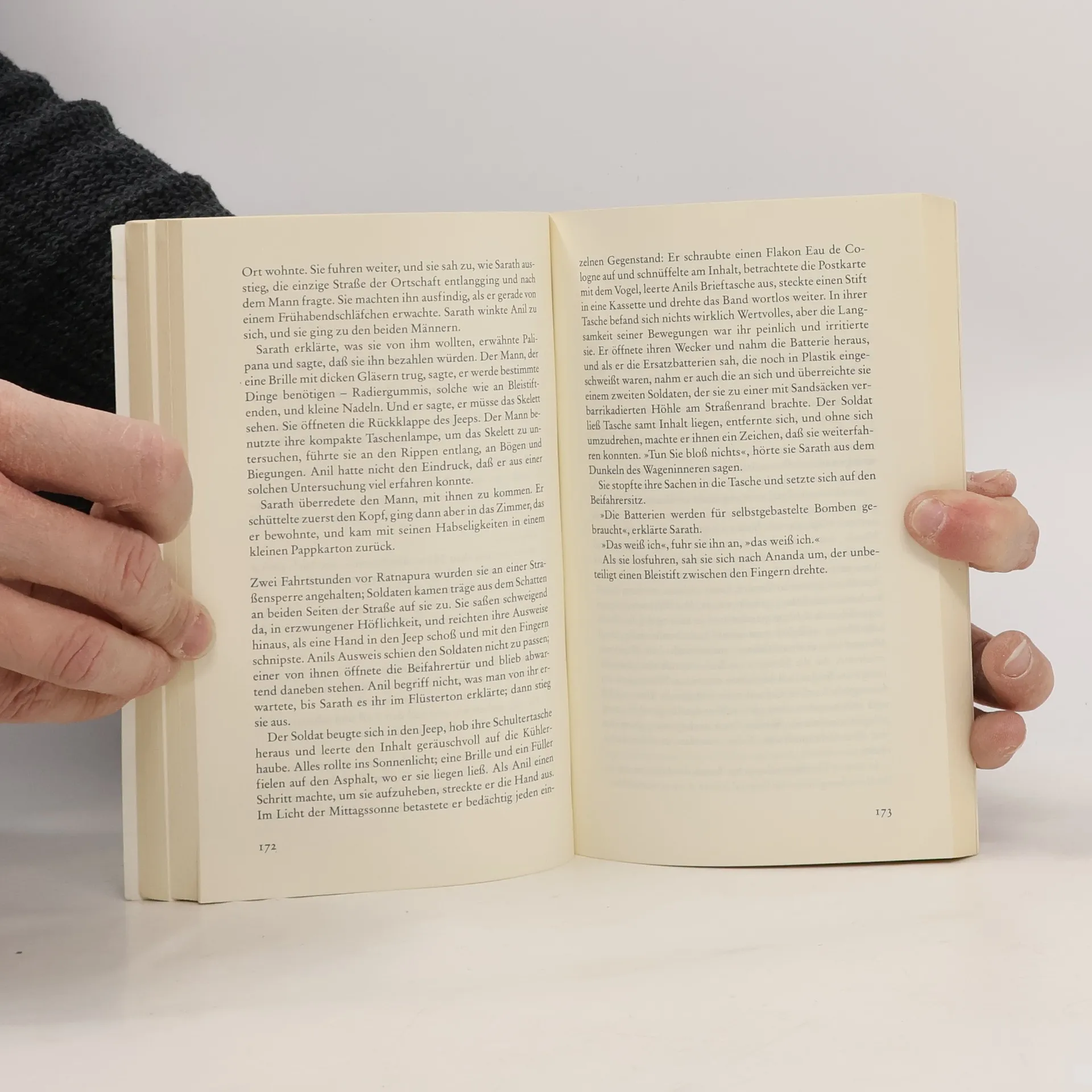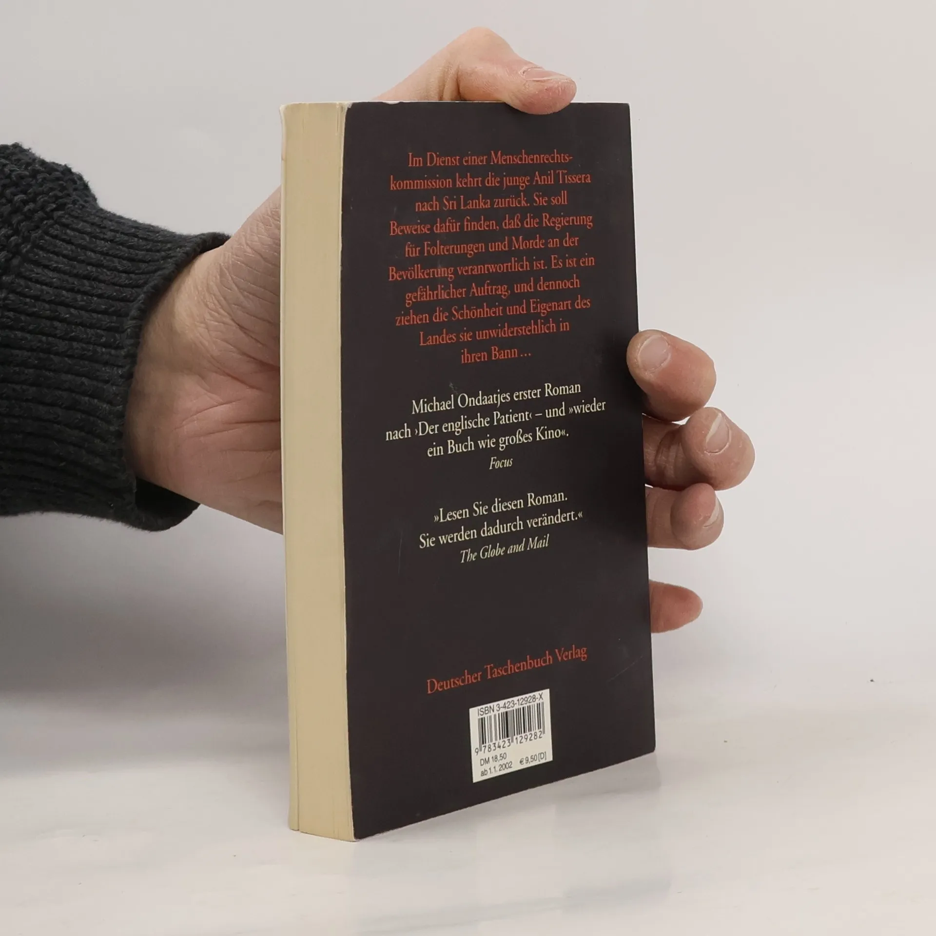 Rückkehr nach Sri Lanka Jahrelang hat sie in fremden Ländern und unter fremden Menschen gelebt – jetzt kehrt Anil Tissera in ihre Heimat Sri Lanka zurück. Für eine Menschenrechtskommission soll sie Beweise finden, daß die Regierung des vom Bürgerkrieg zerrissenen Landes Menschen foltert, umbringt, verschwinden läßt. Unter Lebensgefahr will Anil, zusammen mit dem Archäologen Sarath, die Geschichte eines Opfers rekonstruieren, die den unwiderlegbaren Beweis erbringen könnte, den sie sucht. Mit im Bunde ist der Künstler Ananda, auch er ein Mensch, dem Wunden zugefügt wurden, die er nicht vergessen kann. In einem verlassenen Herrenhaus inmitten von grünen Teeplantagen entfaltet sich eine eigenartige Idylle auf Zeit, die jederzeit ein brutales Ende finden kann, wenn der Geheimdienst davon erfährt. Doch zunächst dringt die Außenwelt herein in Gestalt von Saraths jüngerem Bruder Gamini. Auch er ist Arzt, doch beschäftigt er sich nicht mit den Toten, sondern kümmert sich um die gerade noch Davongekommenen – und es ist ihm einerlei, zu welcher Seite sie gehören.Wo aber steht Sarath eigentlich?
