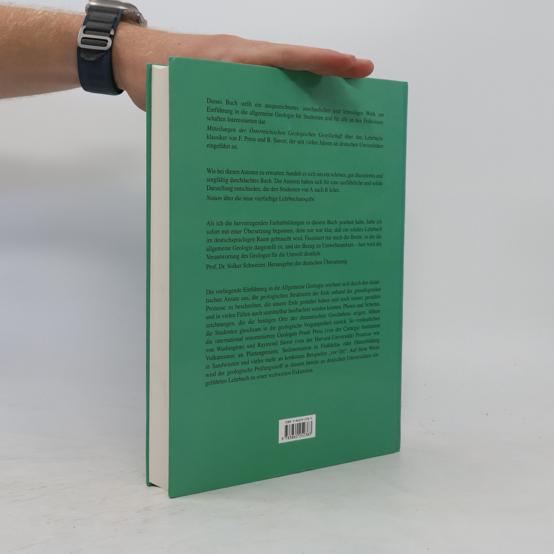 Vulkanismus an Plattengrenzen, Sedimentation in Flussdeltas oder D??nenbildung in Sandw??sten sind nur einige Beispiele der vielf??ltigen Vorg??nge, die unsere Erde gestaltet haben und noch immer gestalten. In vielen F??llen k??nnen wir sie auch unmittelbar beobachten. Dieses bew??hrte Lehrbuch erl??utert die grundlegenden Prozesse durch leicht verst??ndliche Texte. Bestechende Fotos f??hren die Studenten gleichsam an den Ort des Geschehens. Didaktisch hervorragende Zeichnungen verdeutlichen die geologischen Vorg??nge in Gegenwart und Vergangenheit. Auf diese Weise wird der geologische Pr??fungsstoff in diesem Lehrbuch zu einer weltweiten Exkursion. Die Neuauflage wurde an vielen Stellen erg??nzt und verbessert. Mehr als bisher sind die Systeme der Erde ein grundlegendes Thema des Buches. In etlichen Exkursen werden diese genauer durchleuchtet. Andere Exkurse widmen sich wirtschaftlichen oder politischen Themen im Zusammenhang mit der Geologie.
