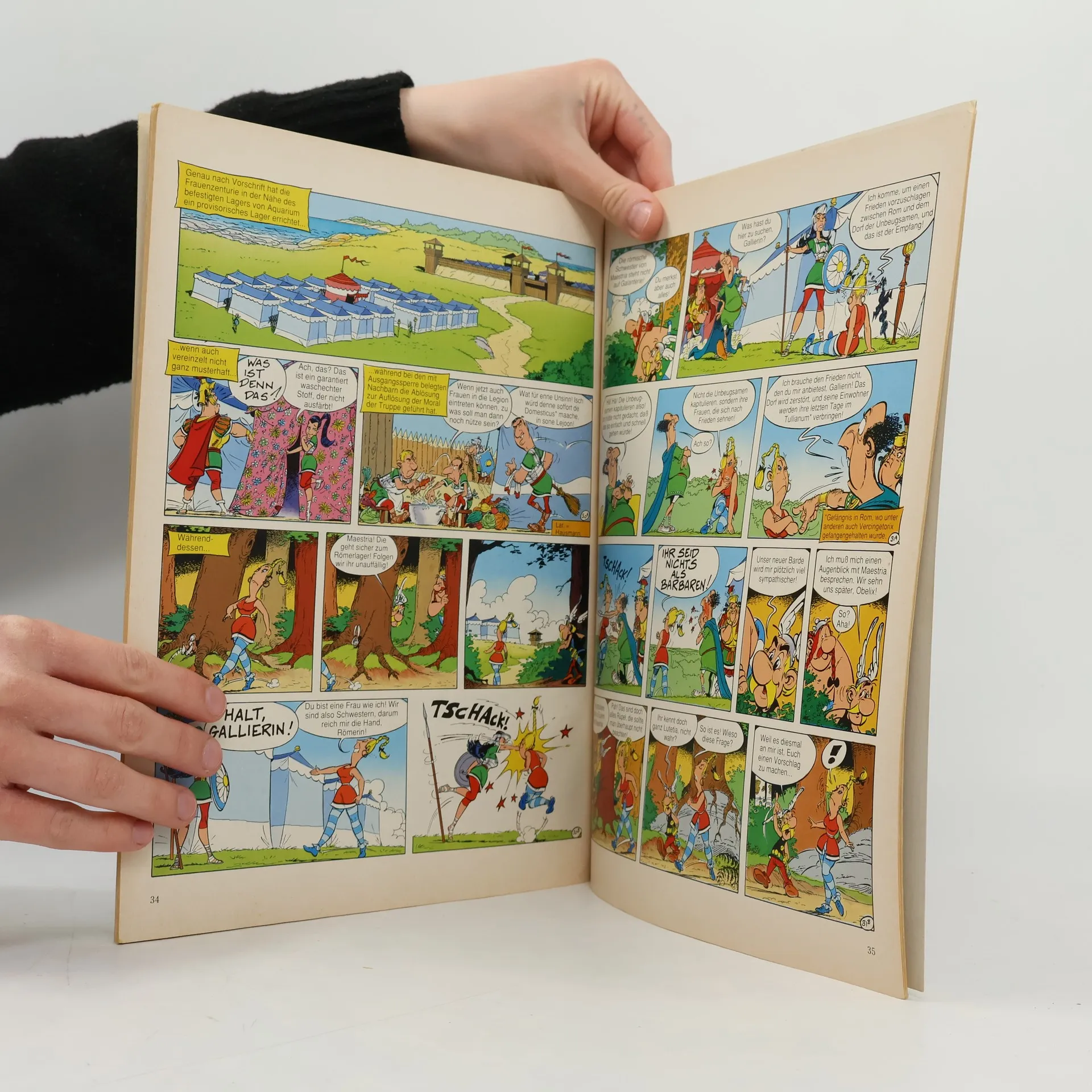 Erstmals sind in dem uns wohlbekannten Dorf die Frauen los, demonstrieren Selbstbewusstsein und üben sich in Emanzipation: Kurzum, sie haben die Hosen an! Ihre Agitatorin heißt Maestria, ist Erzieherin und kommt aus Lutetia in die mal mehr, mal weniger heile gallische Welt. Als die Frauen sich zusammenschließen, schaffen sie das, was Julius Cäsar all die Jahre versagt blieb: Sie vertreiben die Männer aus dem Dorf..