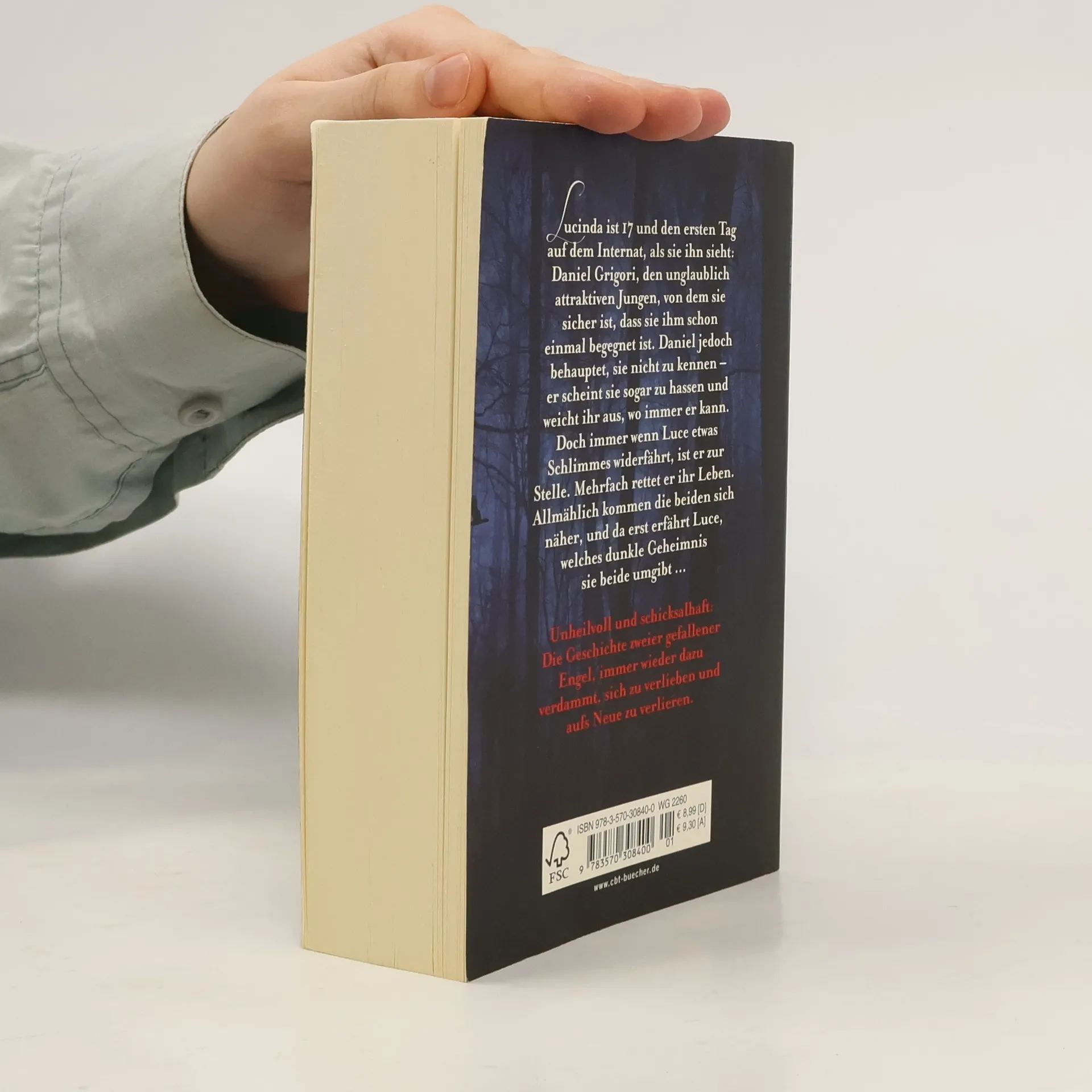 Unheilvoll und schicksalhaft: die Geschichte einer Liebe durch die Jahrhunderte Lucinda ist 17 und den ersten Tag auf dem Internat, als sie ihn sieht: Daniel Grigori, den unglaublich attraktiven Jungen, von dem sie sicher ist, dass sie ihm schon einmal begegnet ist. Daniel jedoch behauptet, sie nicht zu kennen – er scheint sie sogar zu hassen und weicht ihr aus, wo immer er kann. Doch immer wenn Luce etwas Schlimmes widerfährt, ist er zur Stelle. Mehrfach rettet er ihr Leben. Allmählich kommen die beiden sich näher, und da erst erfährt Luce, welches Geheimnis sie beide umgibt: Daniel ist ein gefallener Engel, dazu verdammt, für immer auf der Erde umherzuwandern. Luce aber ist dazu verdammt, alle siebzehn Jahre wiedergeboren zu werden, sich jedes Mal aufs Neue unsterblich in Daniel zu verlieben – und den Tod zu finden, sobald sie sich näherkommen …