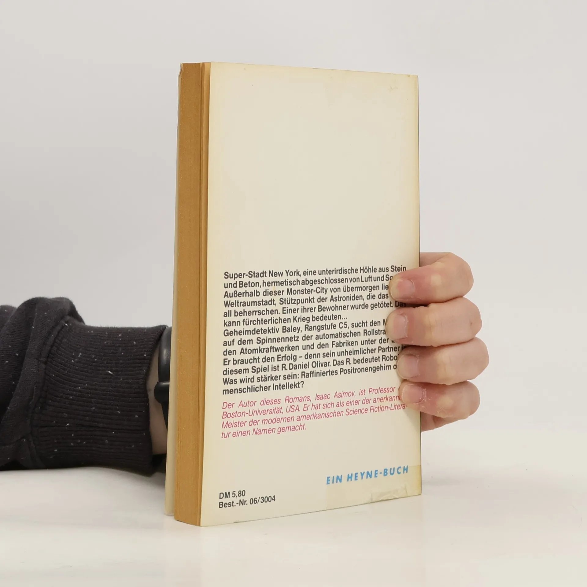 Super-Stadt New York, eine unterirdische Höhle aus Stein und Beton, hermetisch abgeschlossen von Luft und Sonne. Außerhalb dieser Monster-City von übermorgen liegt die Weltraumstadt, Stützpunkt der Astroniden, die das Weltall beherrschen. Einer ihrer Bewohner wurde getötet. Das kann fürchterlichen Krieg bedeuten... Geheimdetektiv Baley, Rangstufe C-5, sucht den Mörder: auf dem Spinnennetz der automatischen Rollstraßen, in den Atomkraftwerken und den Fabriken unter der Erde. Er braucht Erfolg – denn sein unheimlicher Partner in diesem Spiel ist R. Daniel Olivar. Das R. bedeutet Roboter. Was wird stärker sein: Raffiniertes Positronengehirn oder menschlicher Intellekt?
