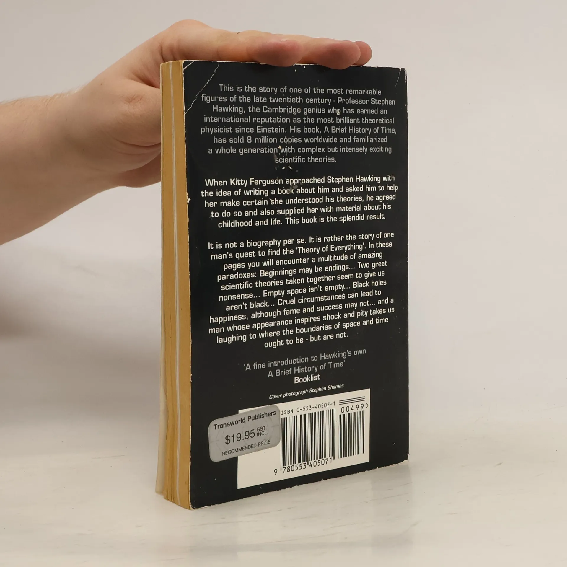 This Is The Story Of One Of The Most Remarkable Figures Of Our Time - Professor Stephen Hawking, The Cambridge Genius Who Has Earned An International Reputation As The Most Brilliant Theoretical Physicist Since Einstein. When Kitty Ferguson Approached Stephen Hawking With The Idea Of Writing A Book About Him And Asked Him To Help Her Make Certain She Understood His Theories, He Agreed To Do So And Also Supplied Her With Material About His Childhood And Life. This Book Is The Splendid Result. It Is Not A Biography Per Se. It Is Rather The Story Of One Man'S Quest To Find The 'Theory Of Everything'. In These Pages You Will Encounter A Multitude Of Amazing Paradoxes: Beginnings May Be Endings& Two Great Scientific Theories Taken Together Seem To Give Us Nonsense& Empty Space Isn'T Empty& Black Holes Aren'T Black& Cruel Circumstances Can Lead To Happiness, Although Fame And Success May Not& And A Man Whose Appearance Inspires Shock And Pity Takes Us Laughing To Where The Boundaries Of Space And Time Ought To Be - But Are Not.