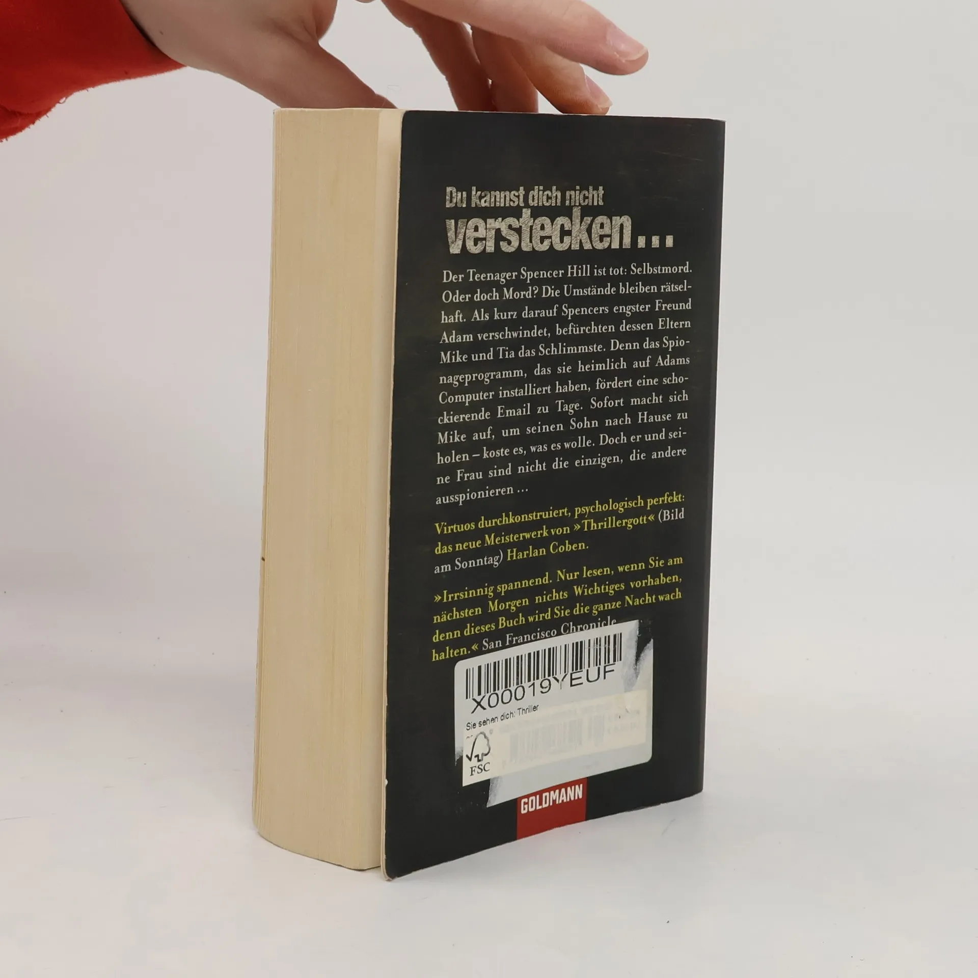 Harlan Cobens bislang beklemmendster Thriller! Der Teenager Spencer Hill ist tot: Selbstmord. Oder doch Mord? Als sein engster Freund Adam Baye verschwindet, befürchten dessen Eltern Mike und Tia das Schlimmste. In der Sorge um ihren Sohn haben sie heimlich ein Spionageprogramm auf Adams Computer installiert, das schon bald eine bedrohliche E-Mail zu Tage fördert. Alarmiert und schockiert macht sich nun Mike selbst auf, um seinen Sohn nach Hause zu holen – koste es, was es wolle. Doch er und seine Frau sind nicht die einzigen, die andere ausspionieren ...Virtuos durchkonstruiert und psychologisch perfekt!
