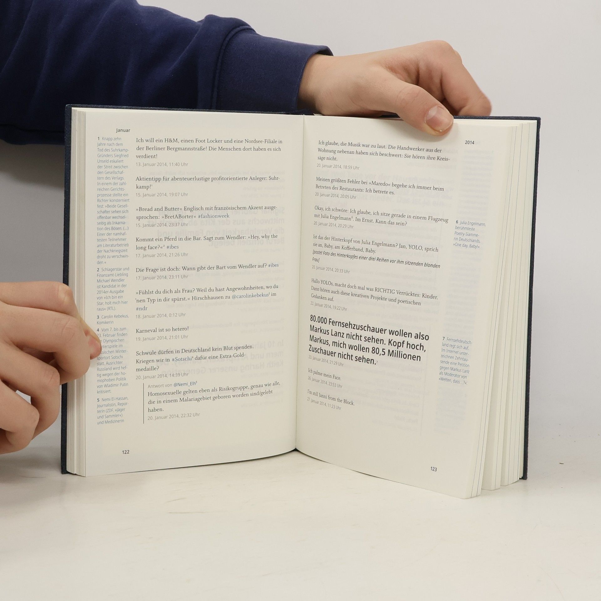 Tweets sind die Aphorismen der Gegenwart. Jan Böhmermanns digitale Chronik der letzten Dekade zeigt, dass das Interessanteste oft nicht in Zeitungen steht. Sein Twitter-Tagebuch dokumentiert Ereignisse, Diskussionen und Erfahrungen und bietet eine radikal neue Art der Geschichtsschreibung: in Echtzeit und impulsiv. Als Böhmermann 2009 zu twittern begann, war die Welt noch anders. Der Kurznachrichtendienst war kaum bekannt, und eine parallele Öffentlichkeit entstand, in der Informationen schnell, ungefiltert und humorvoll verbreitet wurden. Der Zugang ist subjektiv; wichtig ist, was für den Einzelnen von Bedeutung ist – von Weltpolitik bis zu einem neuen Haarschnitt. In der Tradition großer Moralisten beobachtet Böhmermann sich selbst und die Welt. Er reflektiert über den Transport von Erdbeeren, streitet mit dem Bundesjustizminister, diskutiert mit Sido und flirtet mit Erika Steinbach. Mit 2,2 Millionen Followern wird er unbeabsichtigt zum Akteur in der neuen Welt, in der das Internet in die Realität sickert. Böhmermann lobt, streitet, provoziert und informiert. Seine sorgfältig zusammengestellten Tweets sind eine umfassende Kulturgeschichte des vergangenen Jahrzehnts und stellen unterhaltsam die Welt, in der wir leben, in Frage.