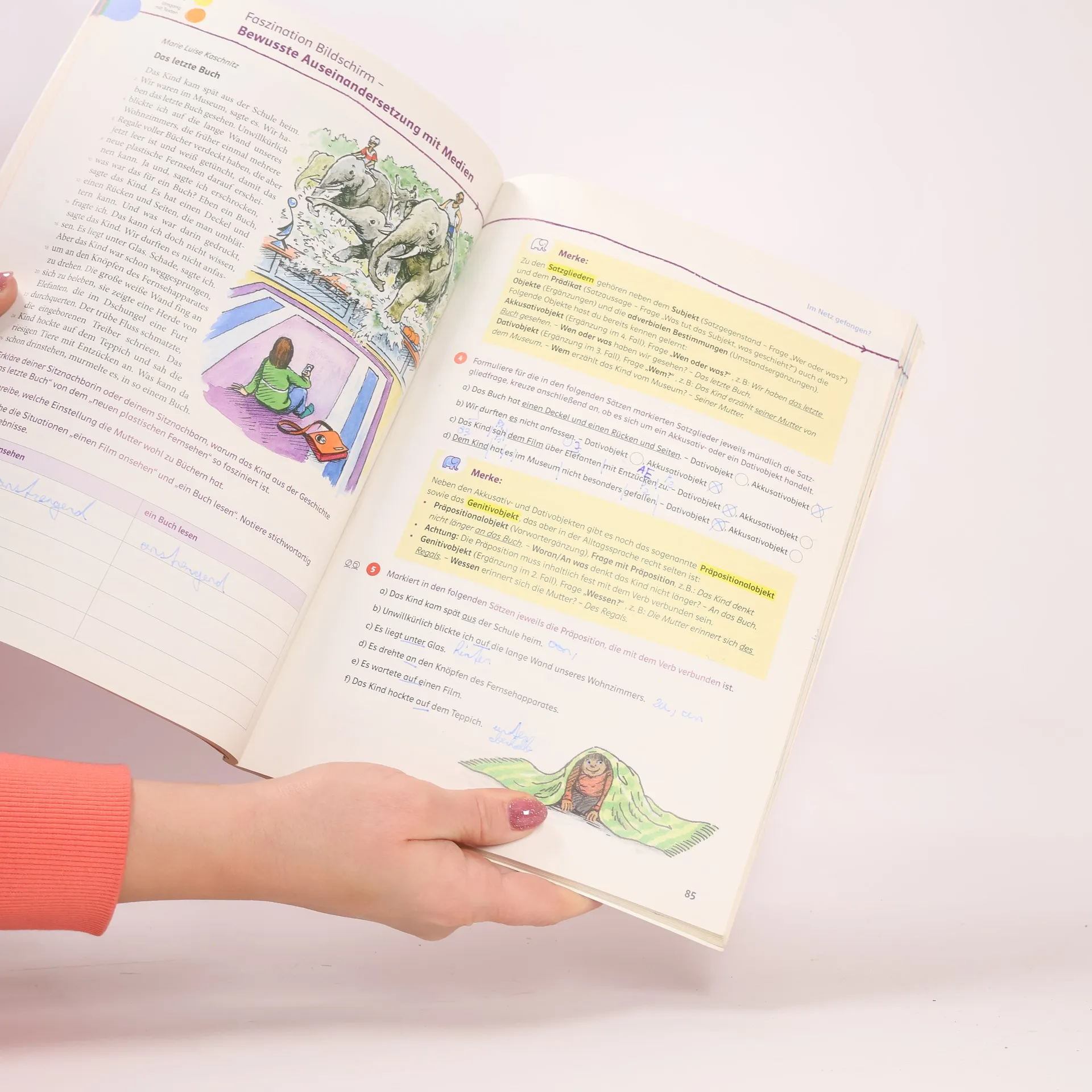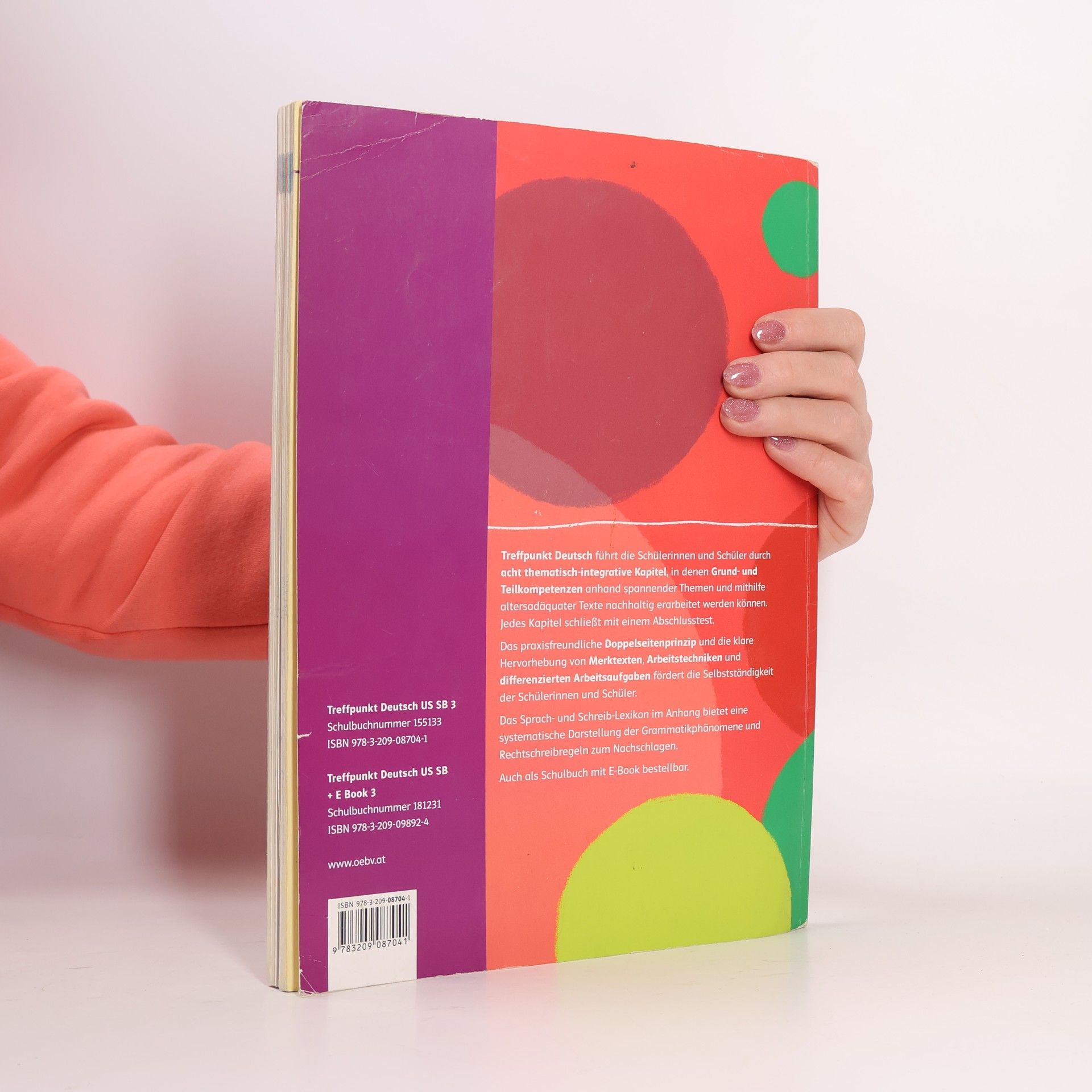 Die Bearbeitung des erfolgreichen Lehrwerks Treffpunkt Deutsch besticht durch motivierende Gestaltung und klare Strukturen. Der übersichtliche Wegweiser durchs Schuljahr führt in acht altersadäquaten Themen-Kapiteln zu Schularbeiten und Sprachbetrachtung hin. Moderne Methoden lassen Schülerinnen und Schülern die Sprache, ihre Regeln und Anwednungen auf vielfältige Weise begreifen. Tipps und Merkkästen erkleichern die Erarbeitung der Inhalte, Kompetenztests überprüfen Bildungsstandards. Abwechslungsreiche Übungen im Arbeitsheft, das Leseheft sowie weitere Trainingsbände runden das Angebot ab. Bei diesem Schulbuch handelt es sich um eine Kombination von gedrucktem Buch und E-Book.