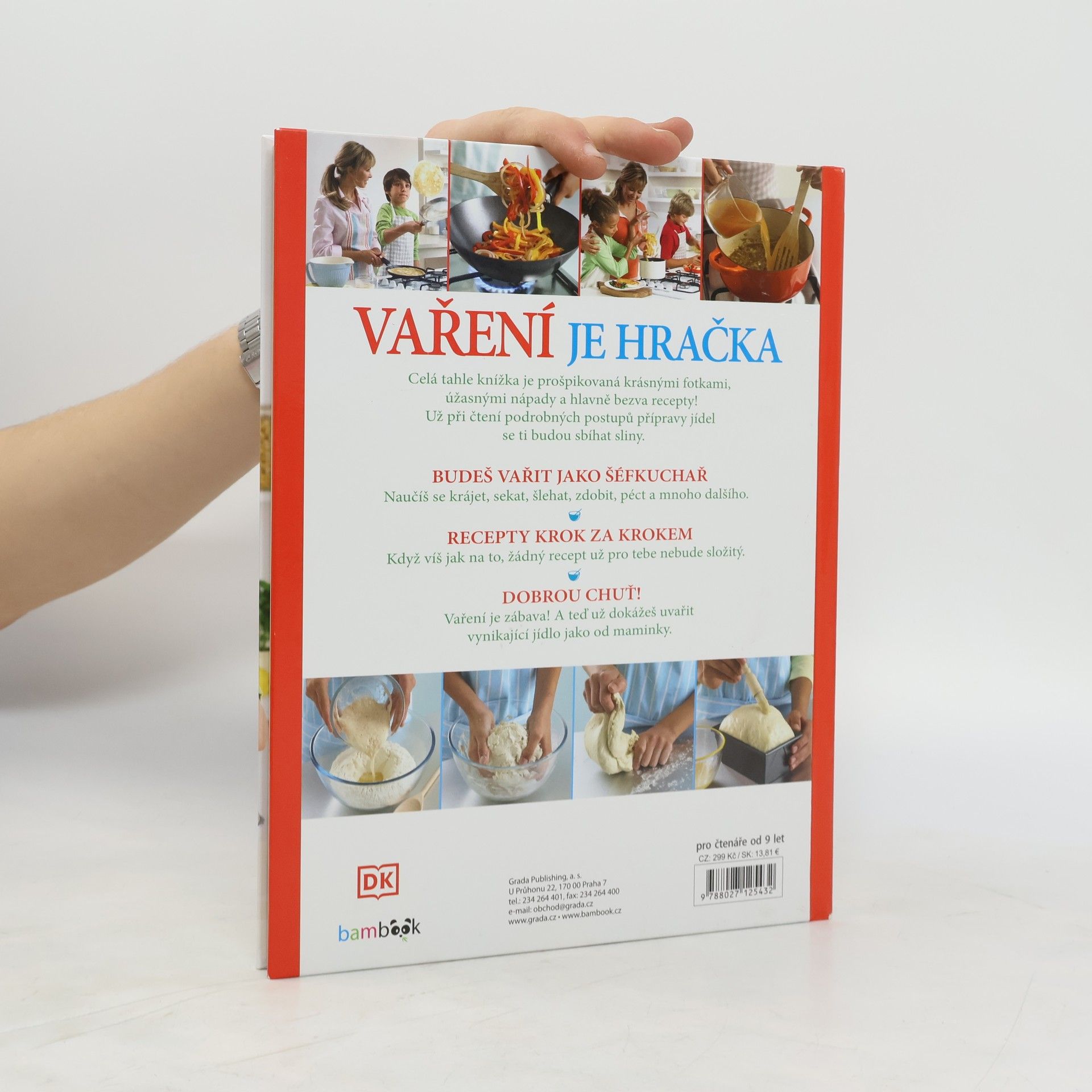 VAŘENÍ JE HRAČKA! Celá tahle knížka je prošpikovaná krásnými fotkami, úžasnými nápady, triky, podrobnými postupy a hlavně bezva recepty! Už při čtení se ti budou sbíhat sliny. Naučíš se krájet, sekat, šlehat, zdobit, péct a mnoho dalšího jako šéfkuchař. Už žádný recept pro tebe nebude složitý a dokážeš uvařit vynikající jídlo jako od maminky.