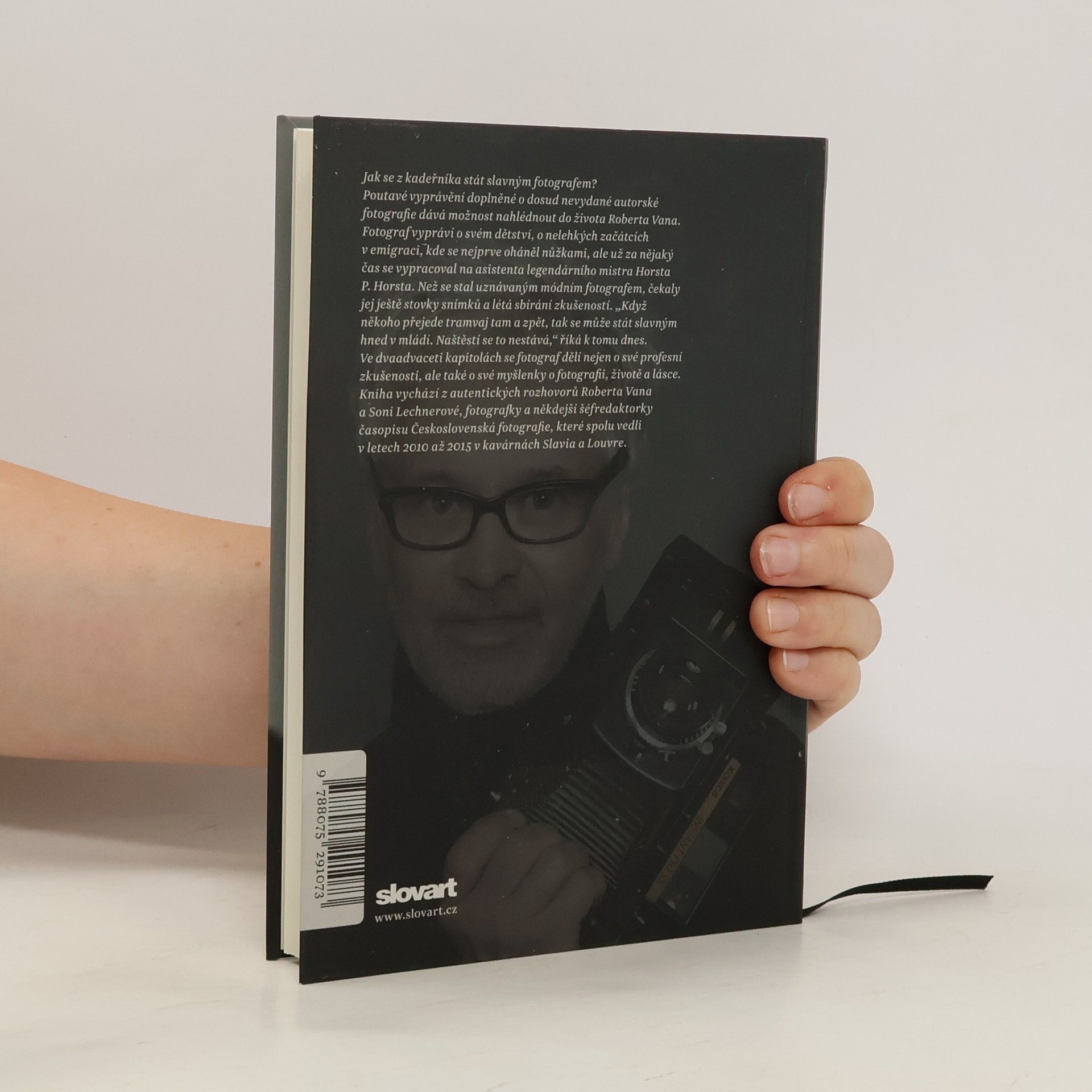 Jak se Robert Vano stal slavným fotografem… nejen to se dozvíte ve dvaceti dvou kapitolách. Poutavé vyprávění, doplněné dosud nepublikovanými fotografiemi, dává čtenářům možnost nahlédnout do života této charismatické osobnosti, připomene časy autorova dětství i nelehkých začátků v emigraci v USA, kde začínal jako asistent legendního mistra odboru Horsta P. Horsta. Robert Vano se v knize podělí nejen o profesionální zkušenosti, ale i o svoje myšlenky o práci, fotografii a o životě. Kniha vychází z autentických rozhovorů Roberta Vana a Soni Lechnerové, bývalé šéfredaktorky časopisu Československá fotografie, které vznikali v letech 2010 až 2015 při jejich setkáních v pražských kavárnách Slavie a Louvre.