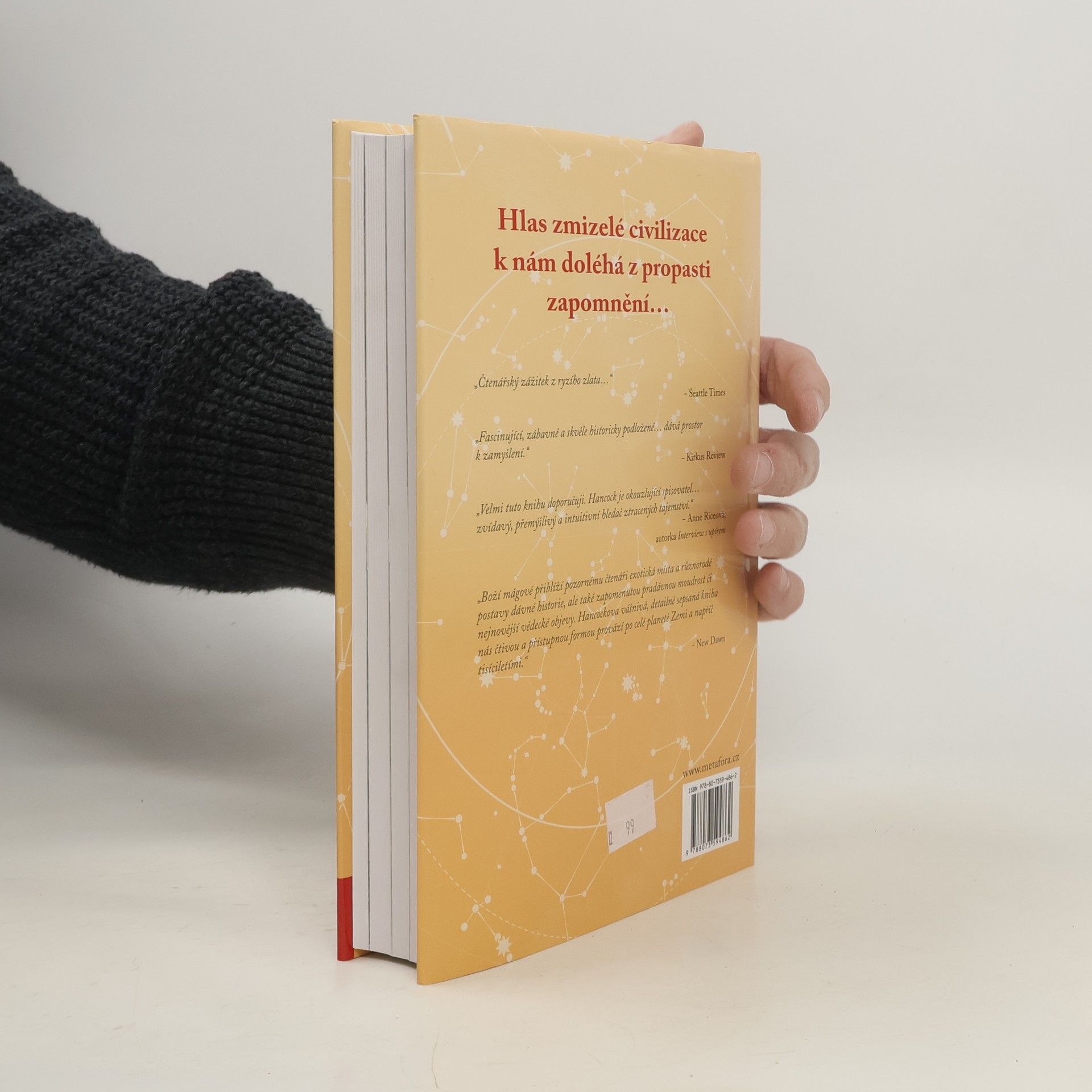 Nové archeologické důkazy pro existenci prehistorických civilizací, od autora bestselleru Otisky božích prstů Bestseller Grahama Hancocka Otisky božích prstů, rozsáhlé pátrání po tajemství naší minulosti a po důkazech ztracené prehistorické civilizace, vyvolal obrovské pozdvižení svou kontroverzní hypotézou. Mohla tu už dávno předtím, než vůbec začalo to, čemu říkáme „historie“, vzkvétat pokročilá civilizace, která pak zmizela v propasti zapomnění? Civilizace schopná složitých astronomických měření a nevídaných architektonických výkonů? A pokud ano, ztratila se úplně beze stopy? Nyní, o dvacet let později, přichází Hancock s pokračováním svého převratného díla naplněným zcela novými, nedávno objevenými vědeckými důkazy a archeologickými nálezy.