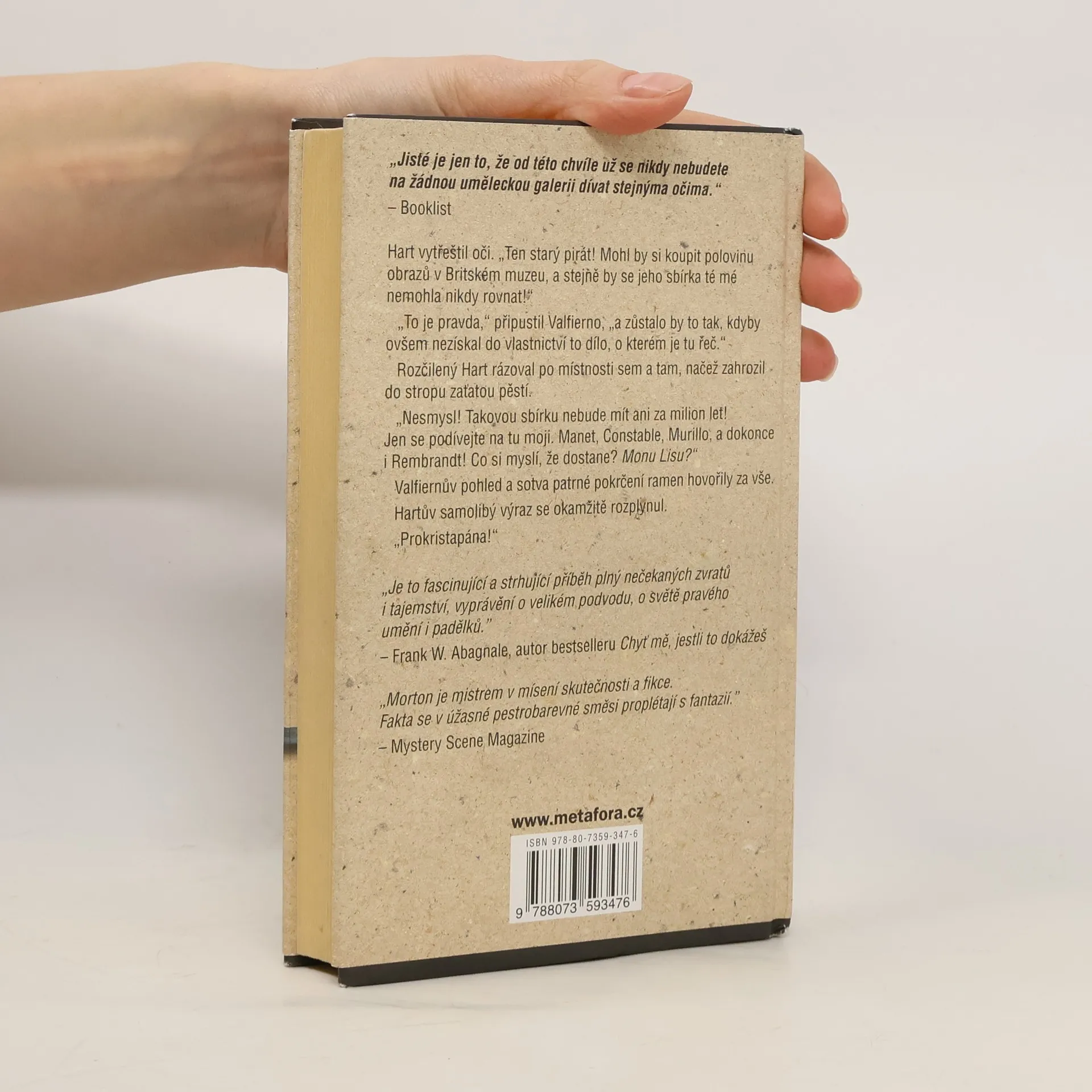 Co by mohlo být výnosnějšího než krádež nejznámějšího obrazu světa? A právě tohle je plán, který se zrodí v hlavě markýze Eduarda Valfierna. Nic menšího než ukradnout ze zdi Louvru samornou Leonardovu Monu Lisu! Zamýšlenými kupci jsou samozřejmě fanatičtí američtí sběratelé, kteří by za takové dílo - byť by už nikdy nemohlo spatřit světlo světa - ochotně zaplatili miliony. A tak se nápad ještě zdokonalí. Proč by Mona Lisa musela být jen jedna? Může jich být rovněž šest. Šest identických kopií, k nerozeznání nejen jedna od druhé, ale i od originálu. Ačkoliv to může znít jako výplod spisovatelské fantazie, není tomu tak. Příběh je založen na skutečné události, která roku 1911 hýbala světem a plnila stránky novin. Ožívá před námi okouzlující paleta barev secesní Paříže, s veškerou její starosvětskou romantikou a svéráznými postavami.