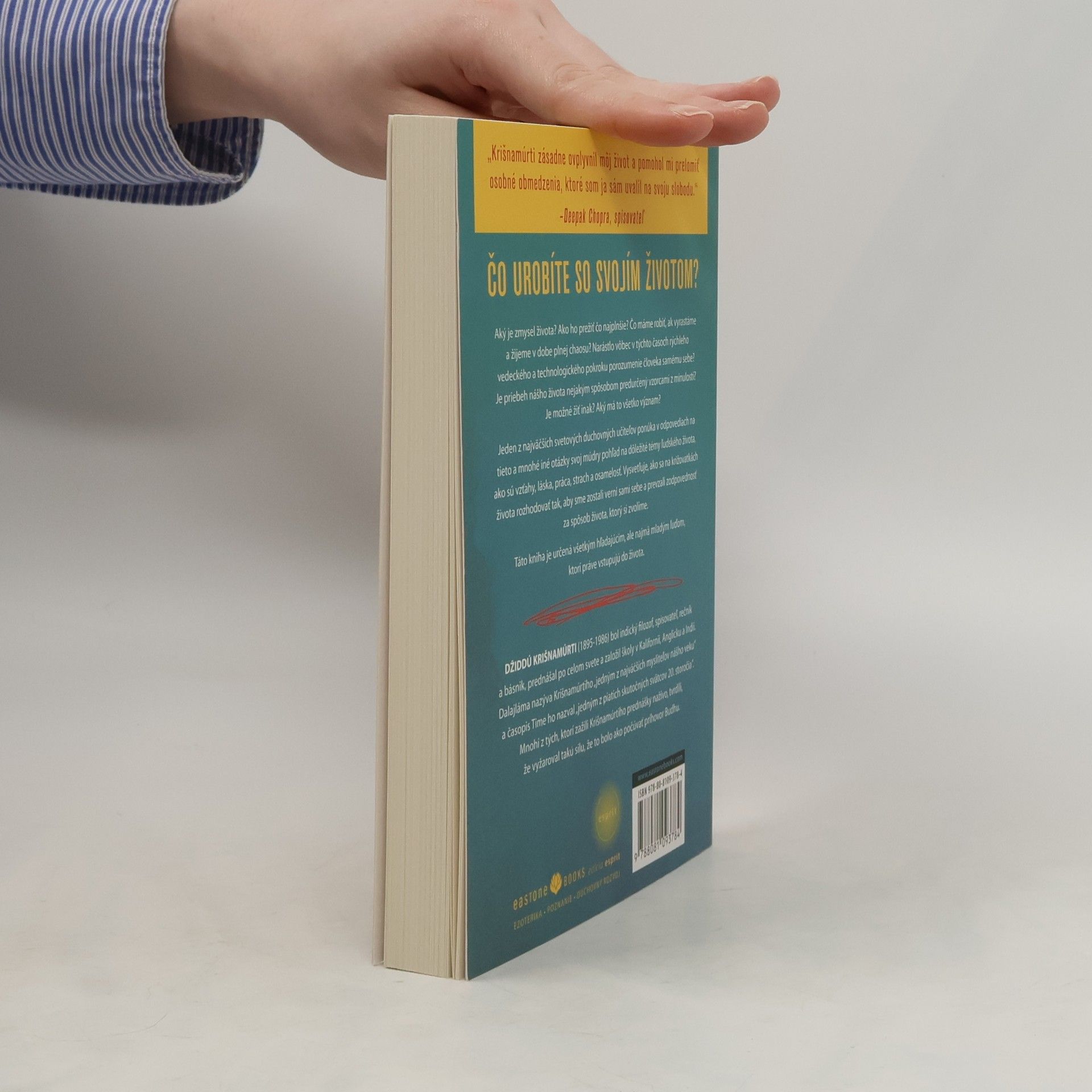 Aký je zmysel života? Ako ho prežiť čo najplnšie? Čo máme robiť,ak vyrastáme a žijeme v dobe plnej chaosu?Narástlo vôbec v týchto časoch rýchleho vedeckéhoa technologického pokroku porozumenie človeka samému sebe?Je priebeh nášho života nejakým spôsobom predurčený vzorcamiz minulosti? Je možné žiť inak? Aký má to všetko význam?Jeden z najväčších svetových duchovných učiteľov ponúkav odpovediach na tieto a mnohé iné otázky svoj múdry pohľadna dôležité témy ľudského života, ako sú vzťahy, láska, práca,strach a osamelosť. Vysvetľuje, ako sa na križovatkách životarozhodovať tak, aby sme zostali verní sami sebe a prevzalizodpovednosť za spôsob života, ktorý si zvolíme.Táto kniha je určená všetkým hľadajúcim, ale najmä mladýmľuďom, ktorí práve vstupujú do života.